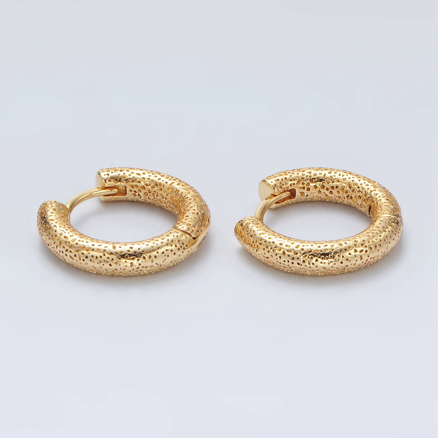 24K Gold Filled Dotted Textured Huggie Hoop Earrings | Q-501