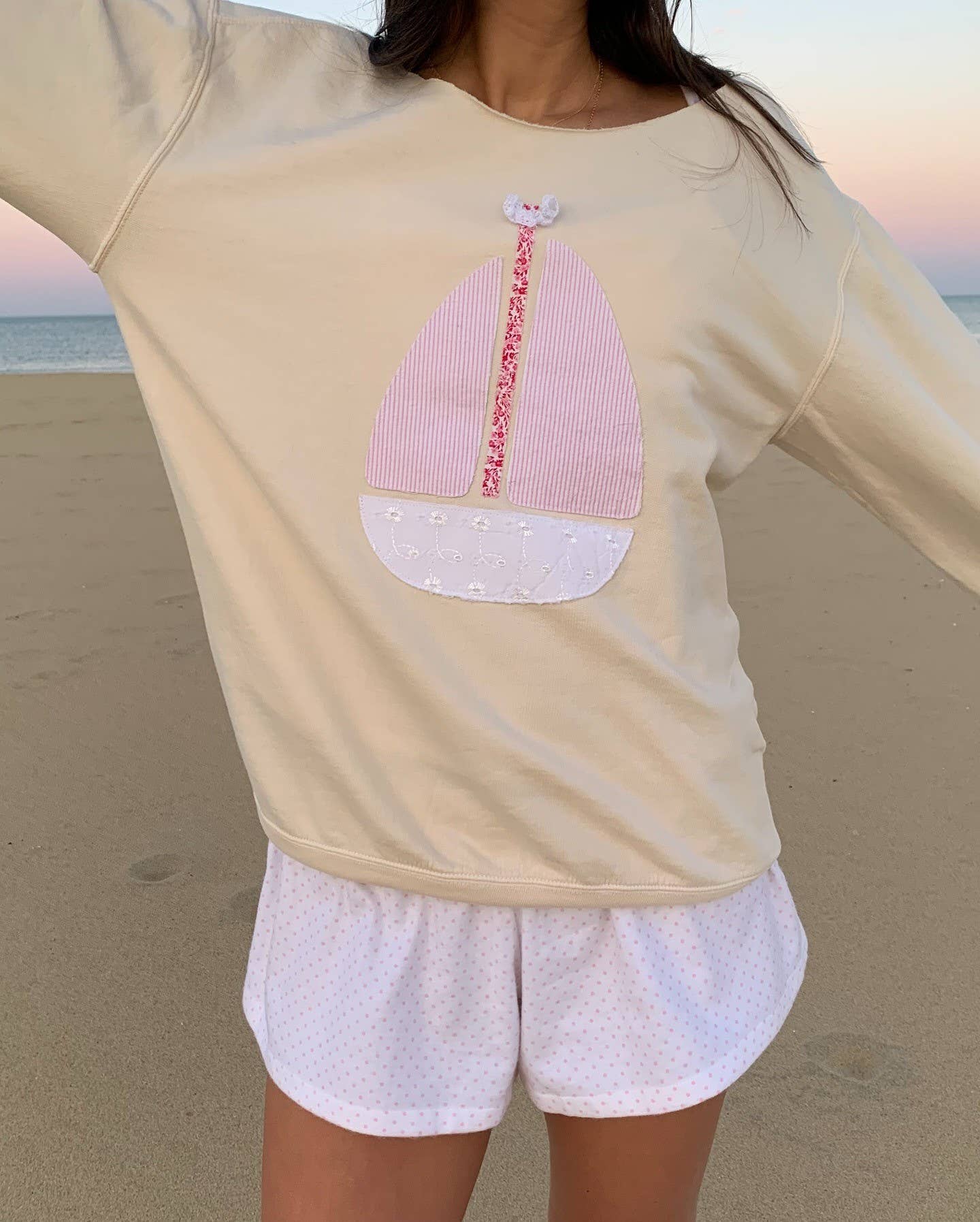 Long Sleeve Top with Sailboat Applique: Gray / L