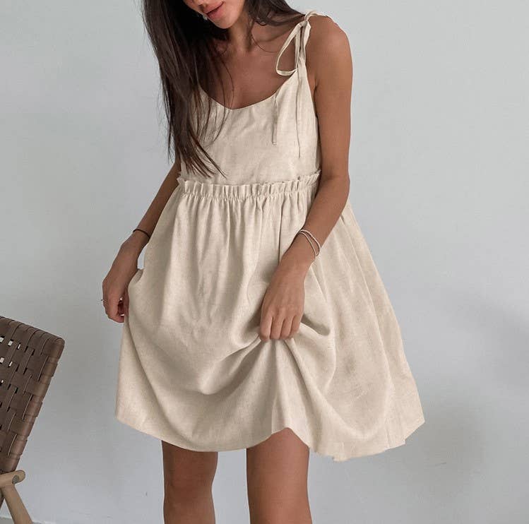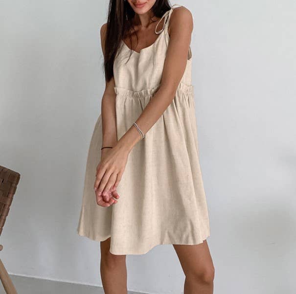 Linen Ruffled Resort Style Vintage Loose Slip A-Line Dress