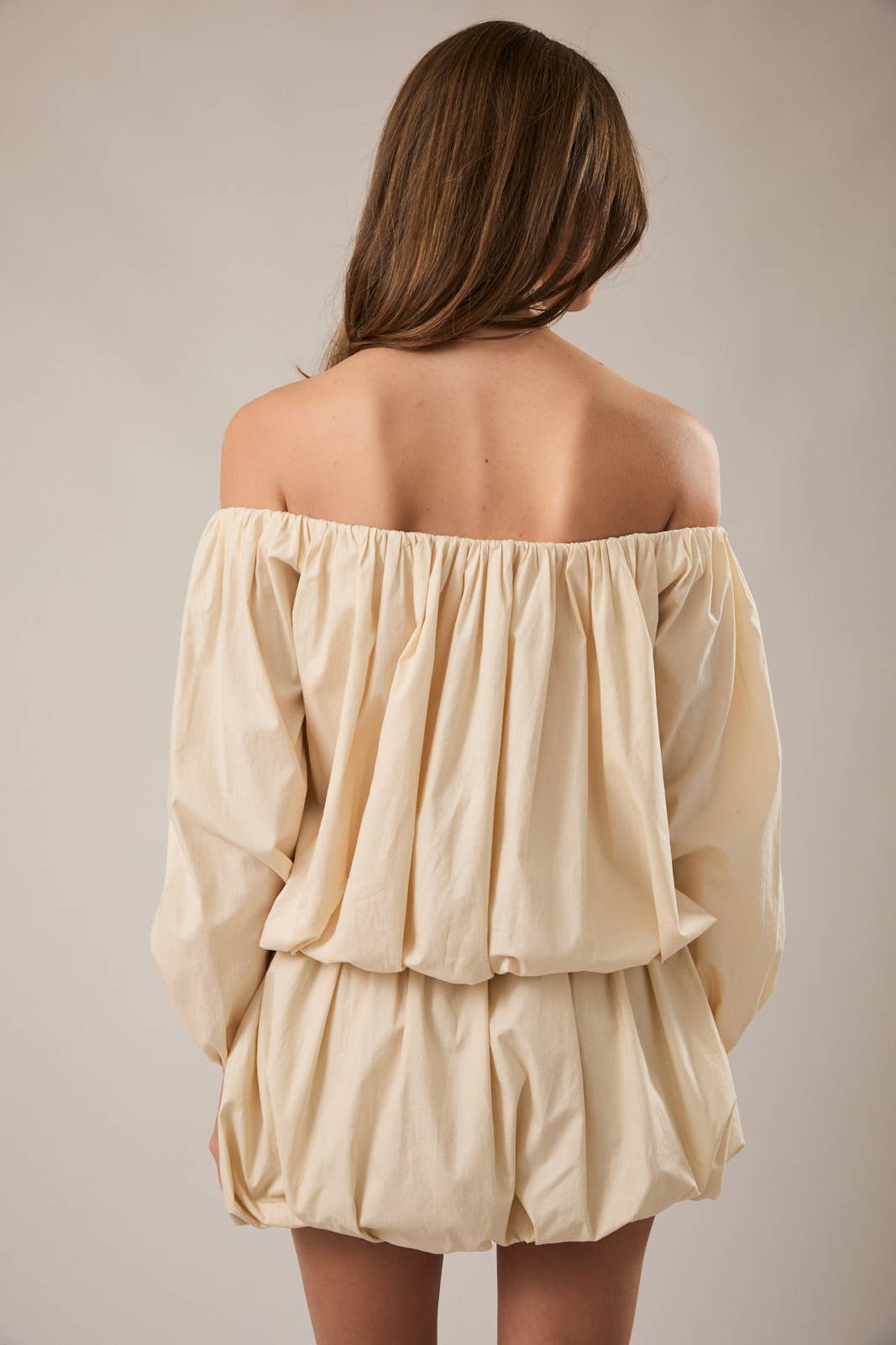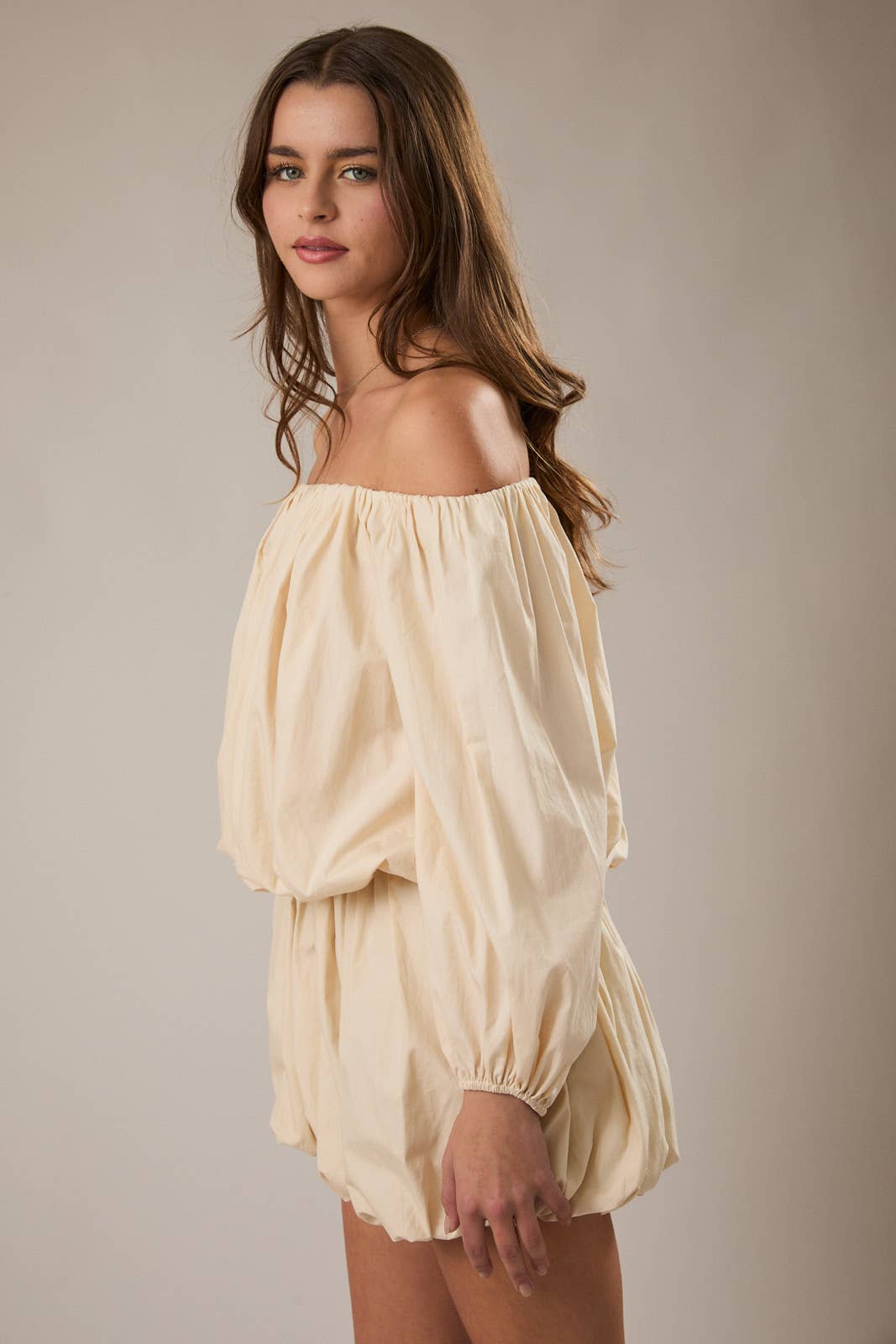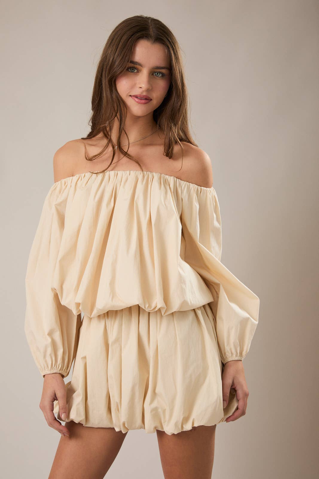 OFF SHOULDER BUBBLE TOP: CREAM / XS