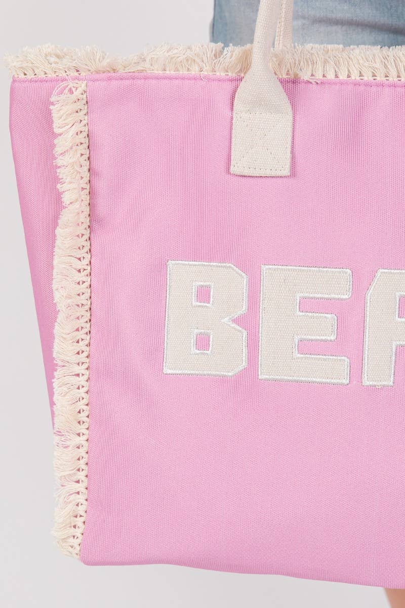 Large Fun "BEACH"Fringed Tote Bag - Pink/Blue/Neon Yellow