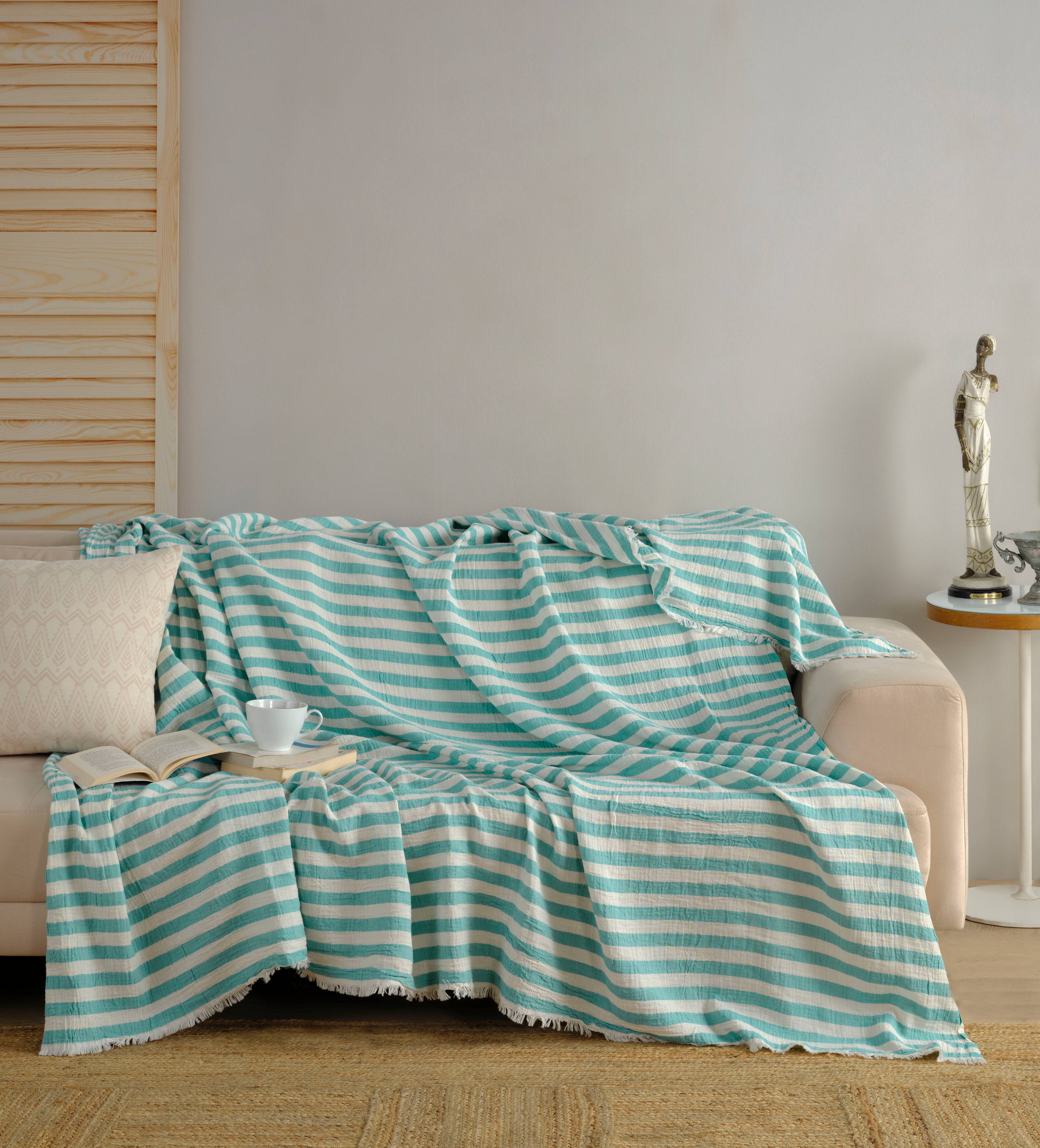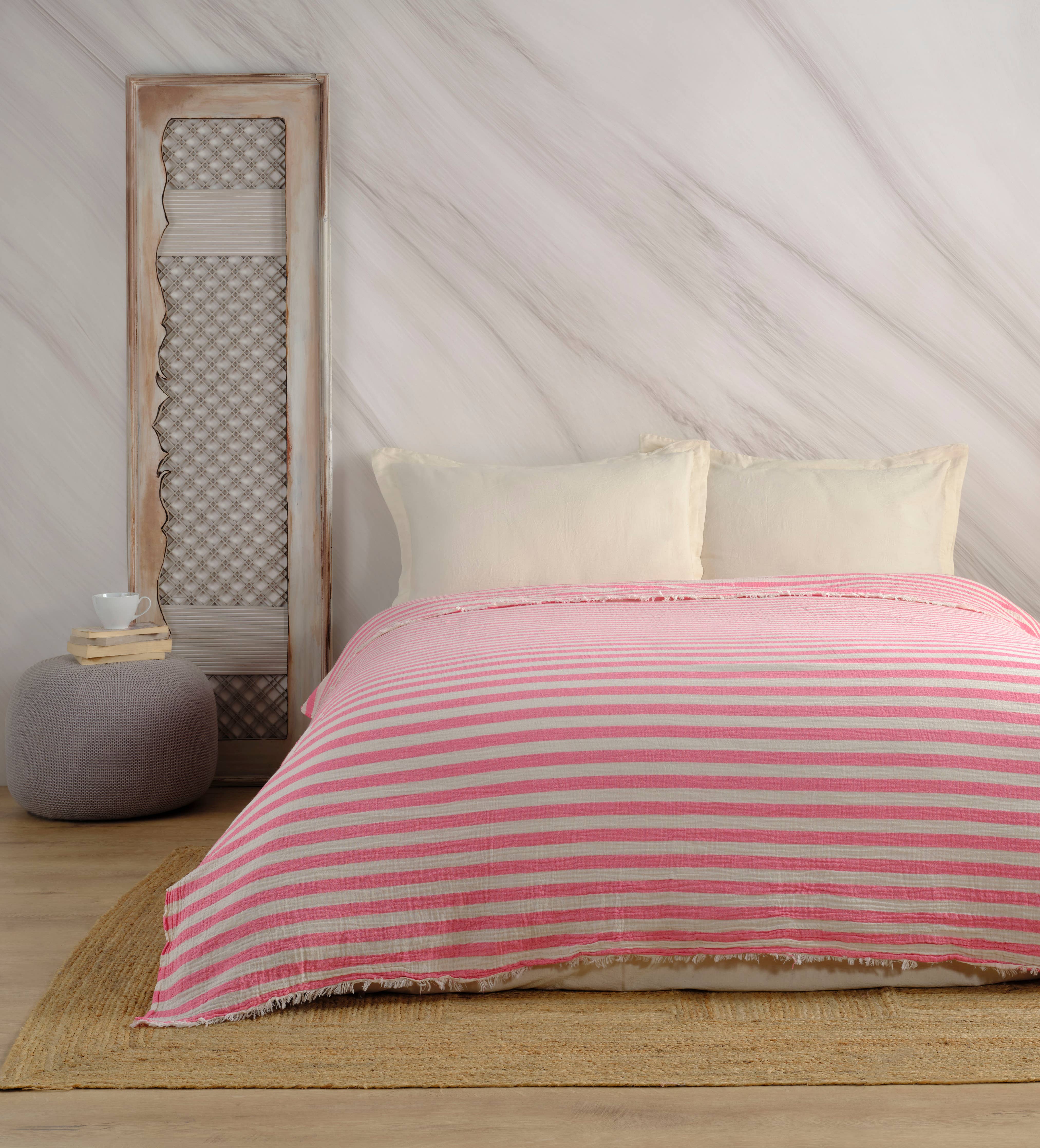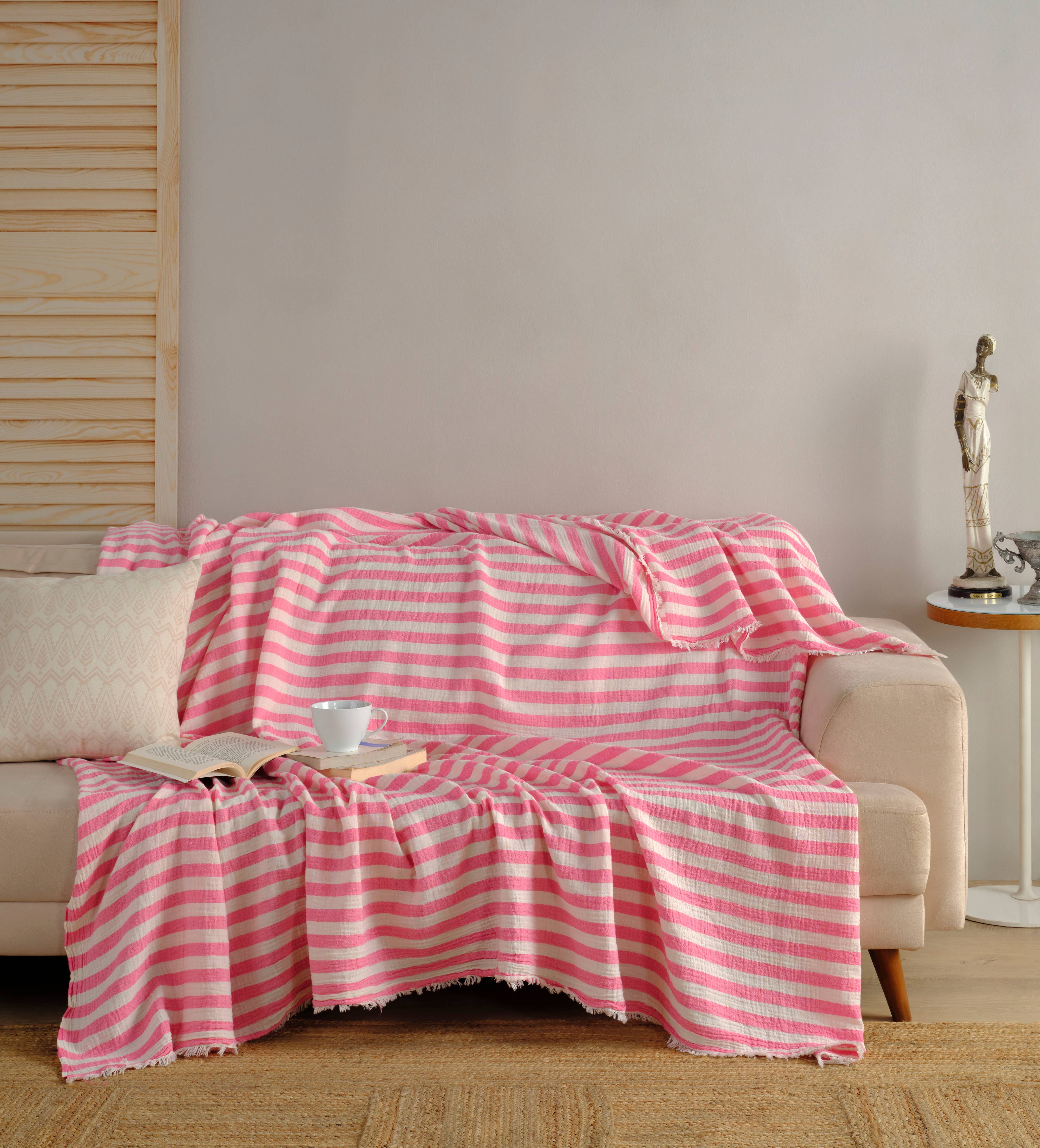 Muslin Blanket / Coverlet / Giant Turkish Towel: Pink or Green Striped 2XL
