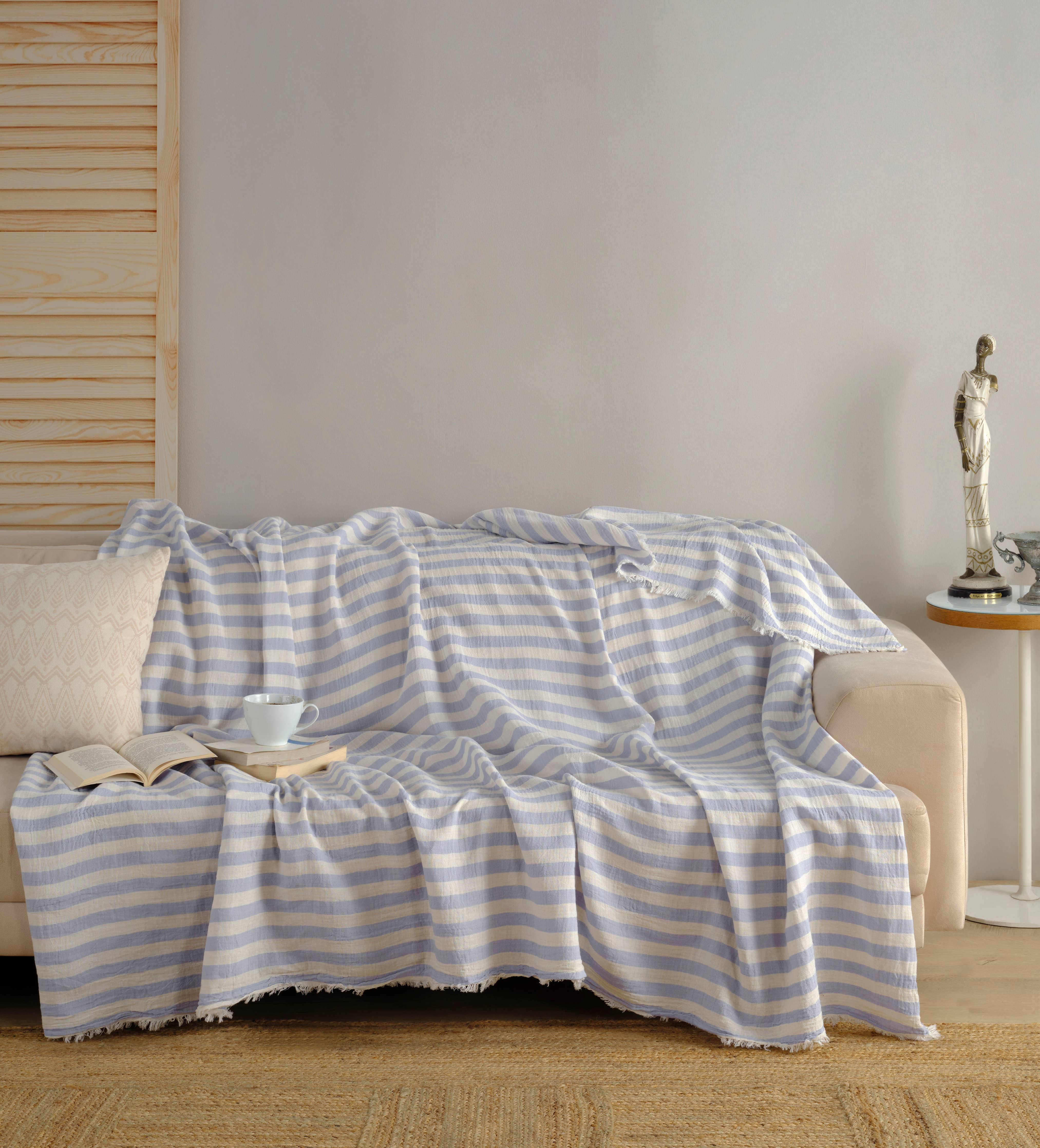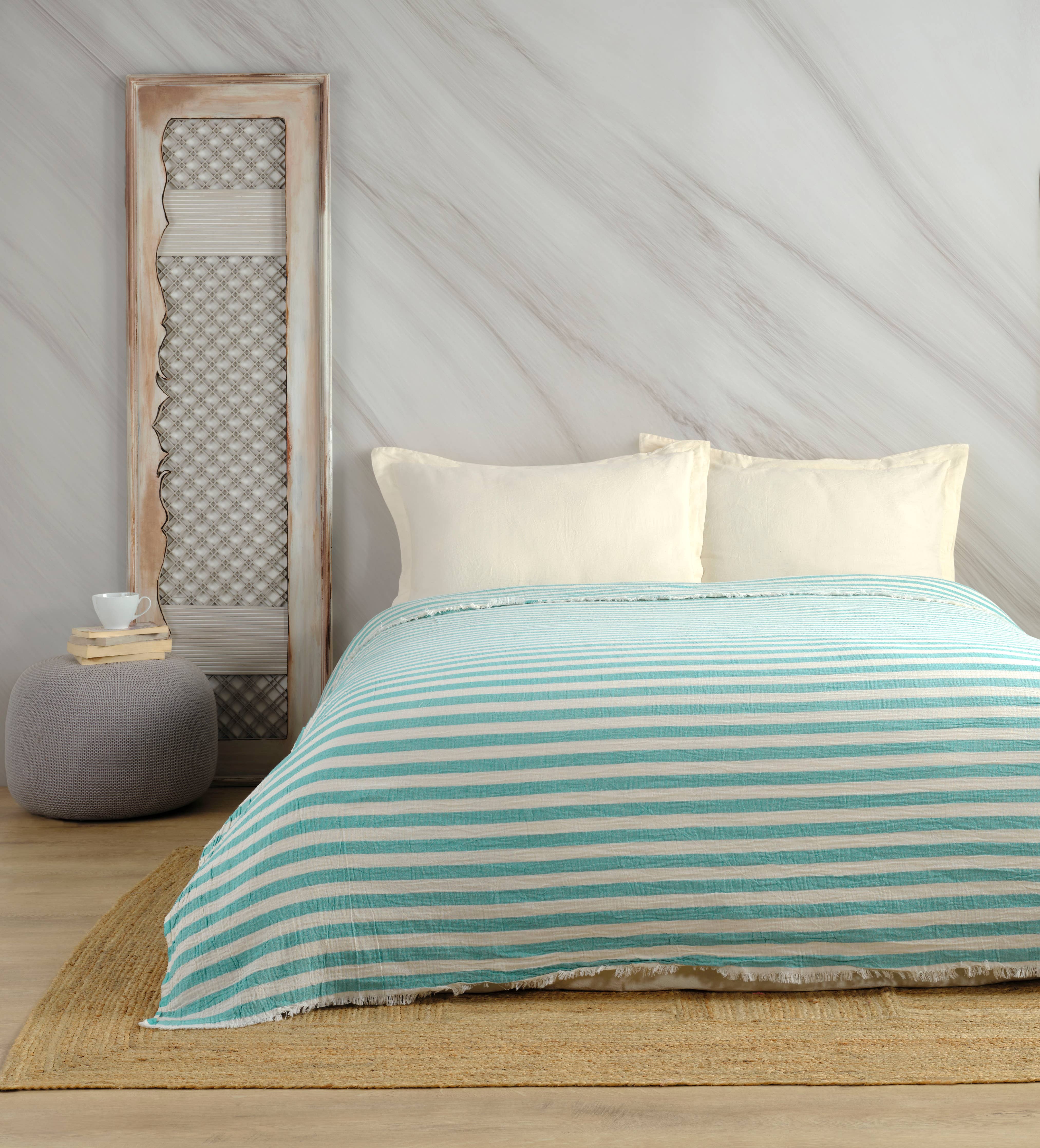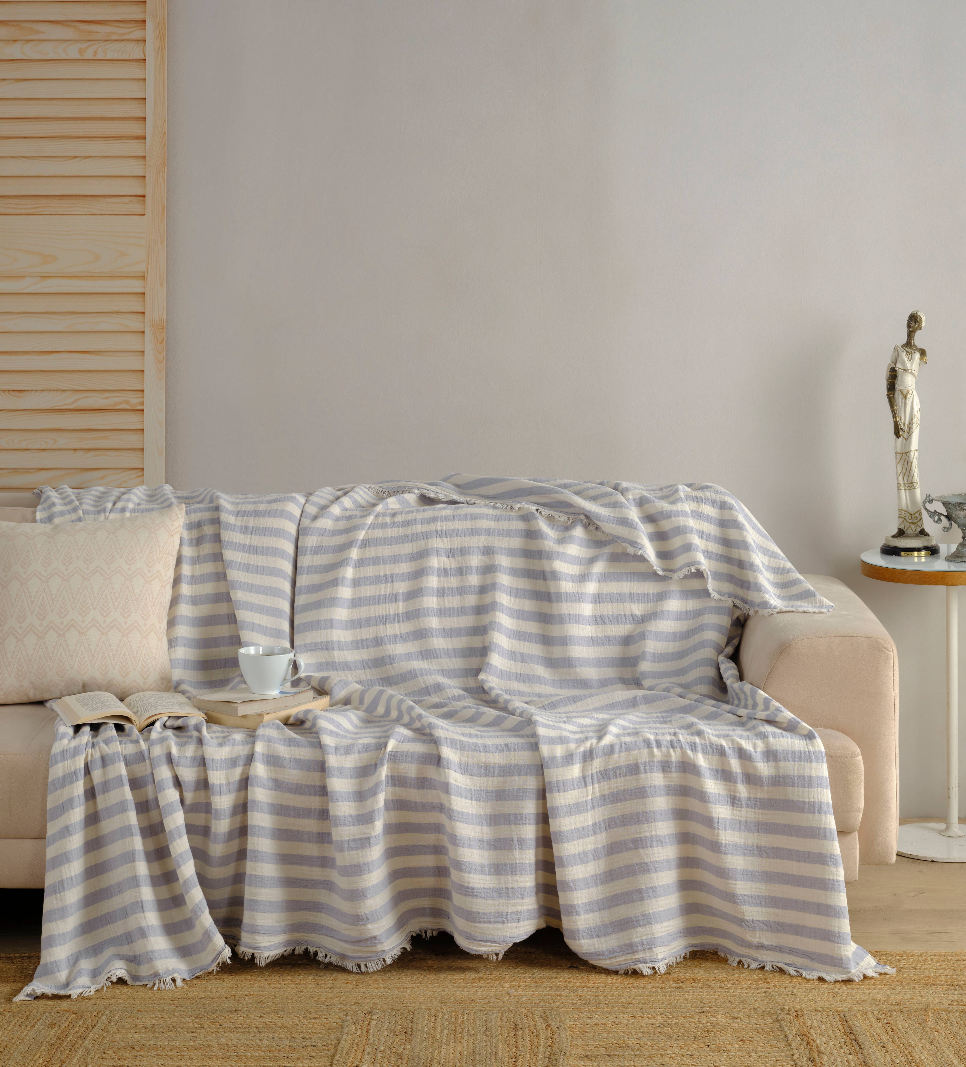 Muslin Blanket / Coverlet / Giant Turkish Towel: Pink or Green Striped 2XL