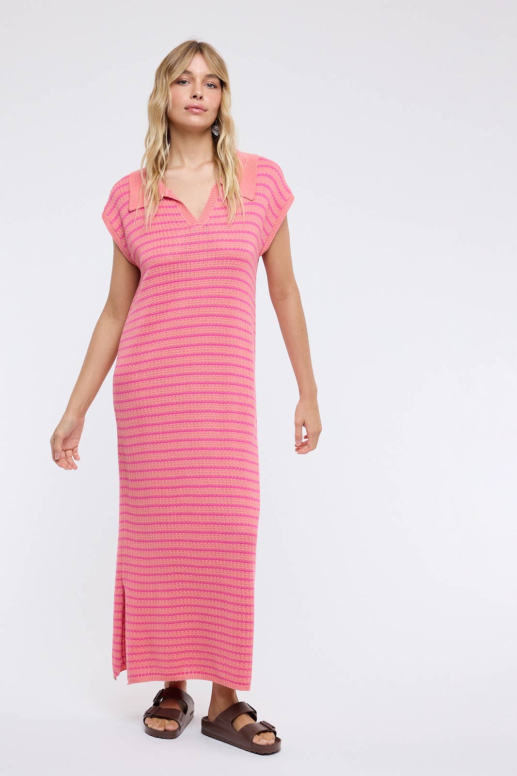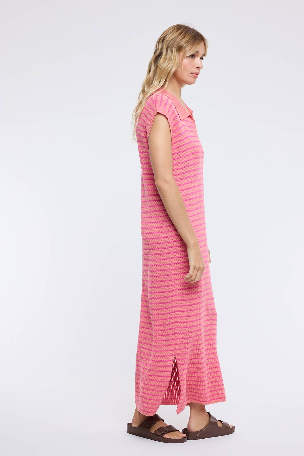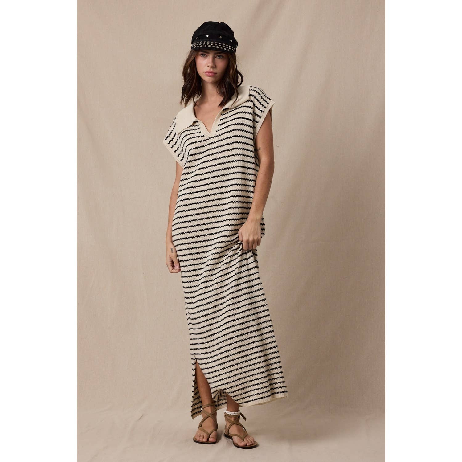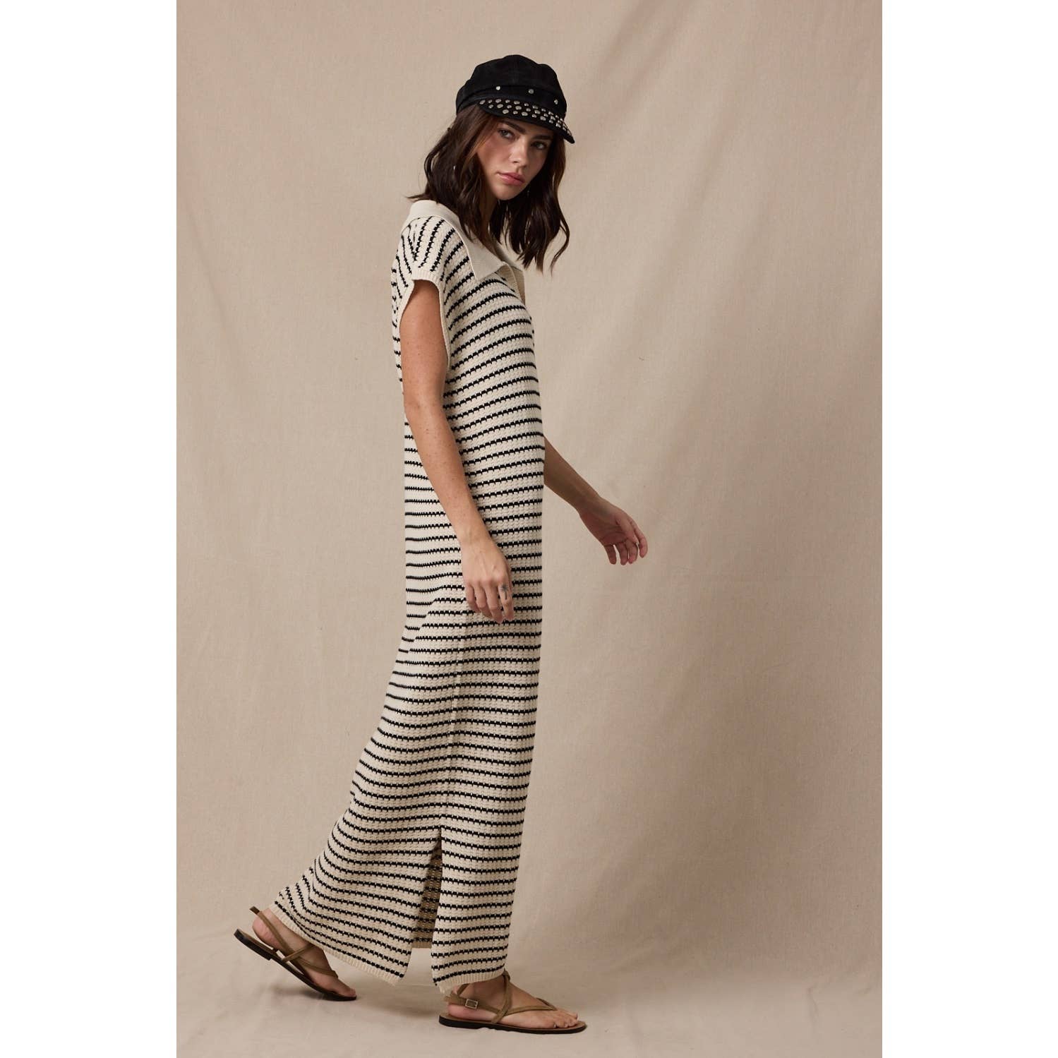 COLLARED STRIPE SWEATER MIDI DRESS / WL25-11902: MINT/BLUE / L