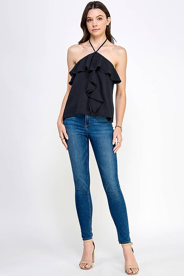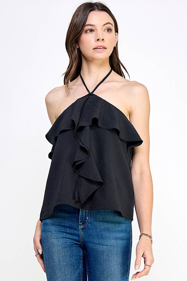 Black Ruffle Halter Top