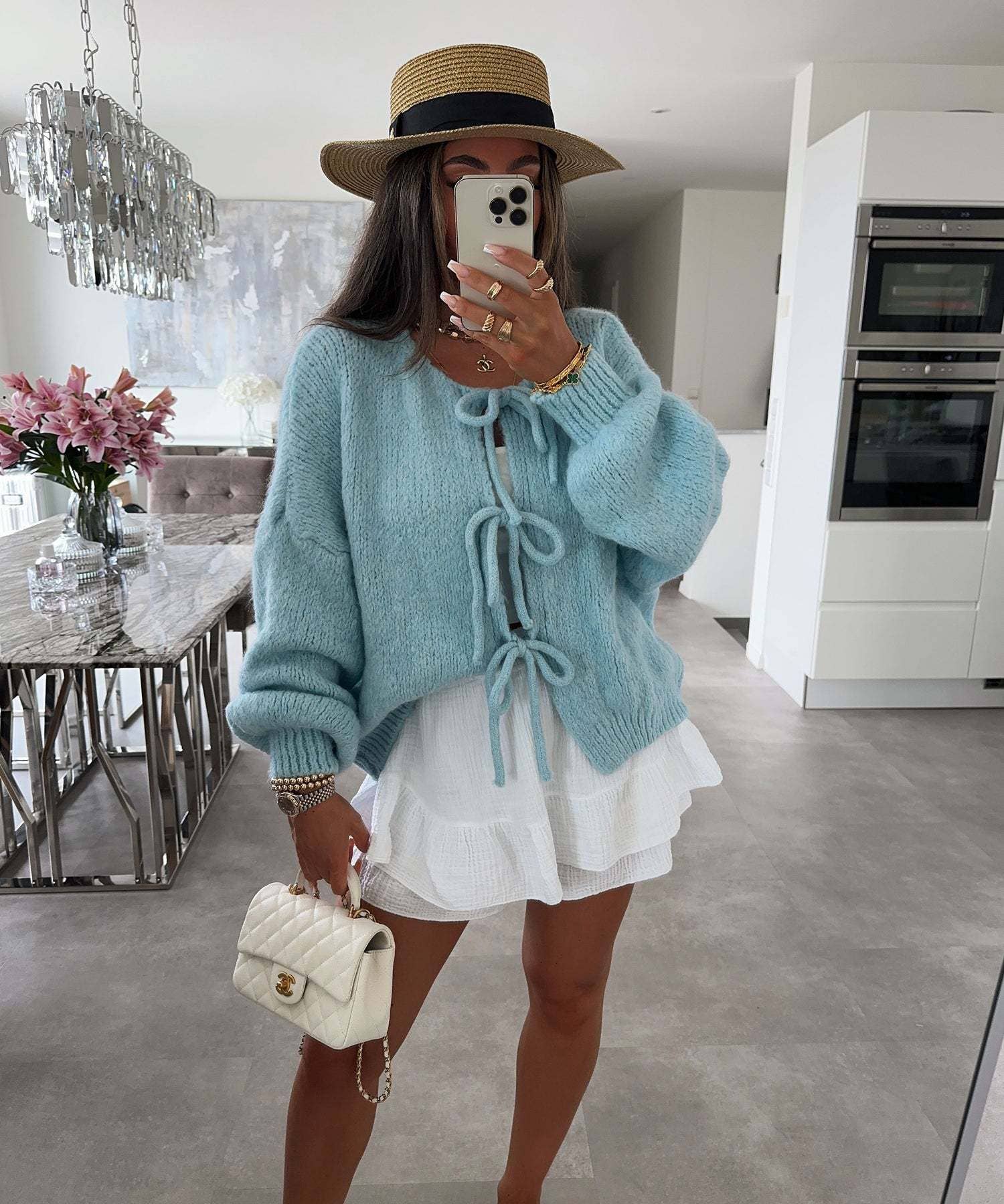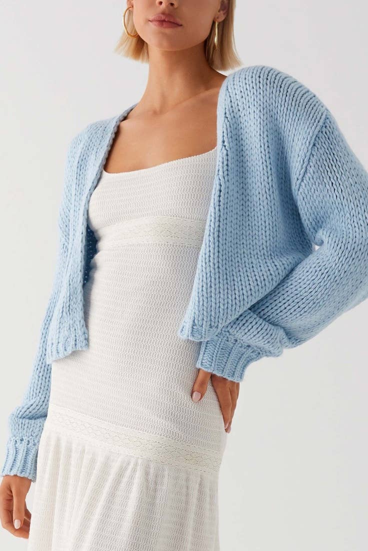 CREW NECK STRIPE SWEATER & WIDE LEG PANTS: AQUA-LT BLUE STRIPE / XS