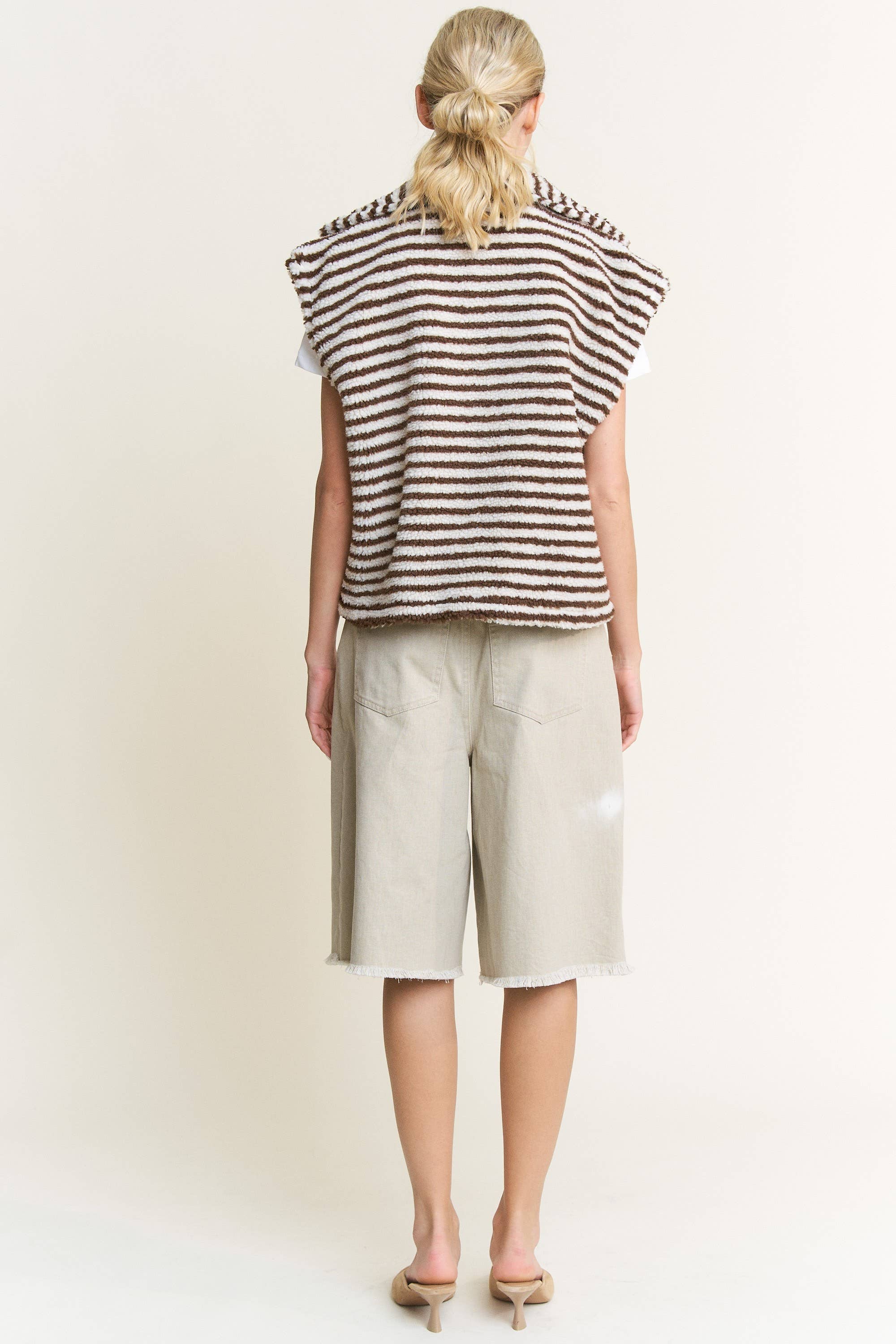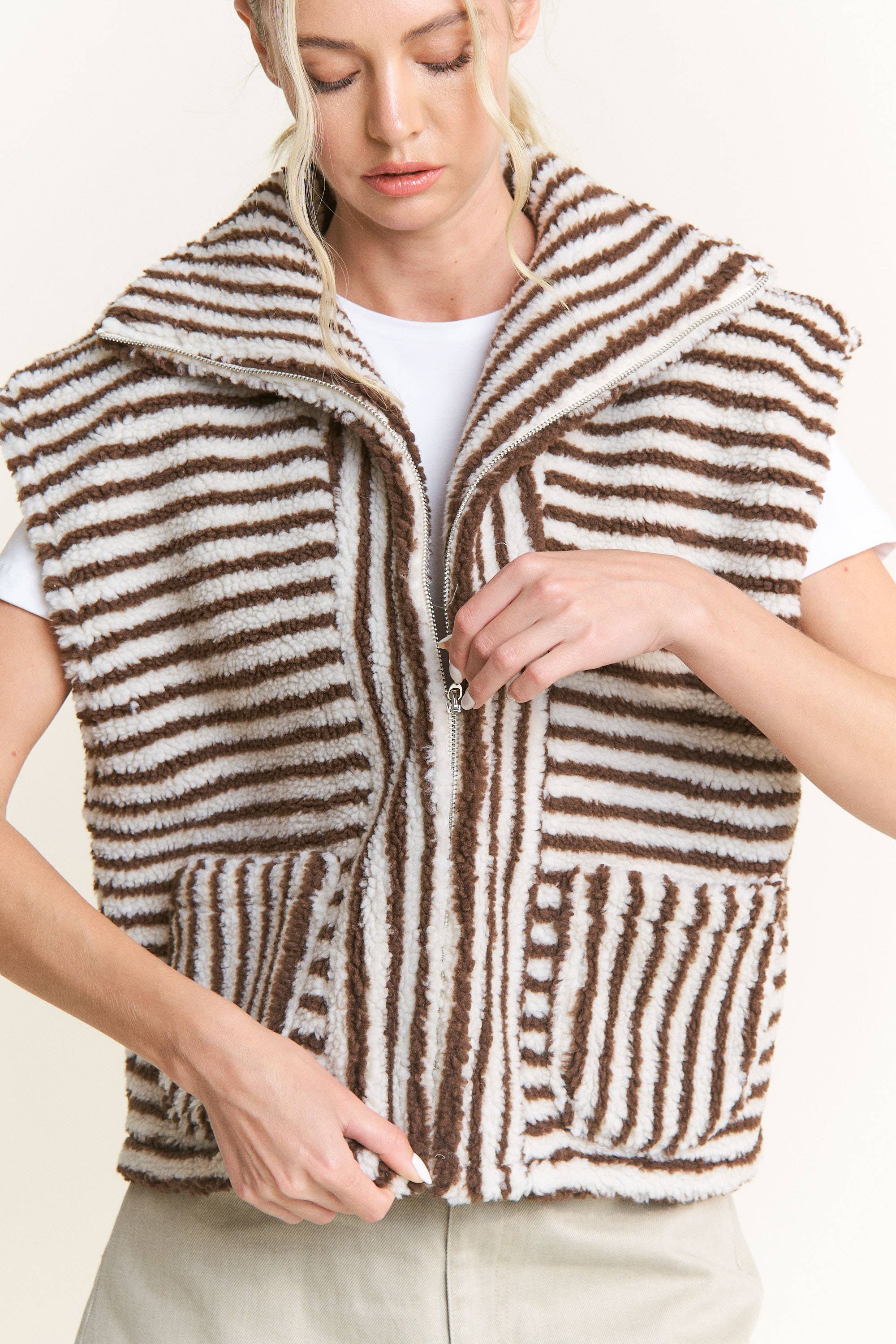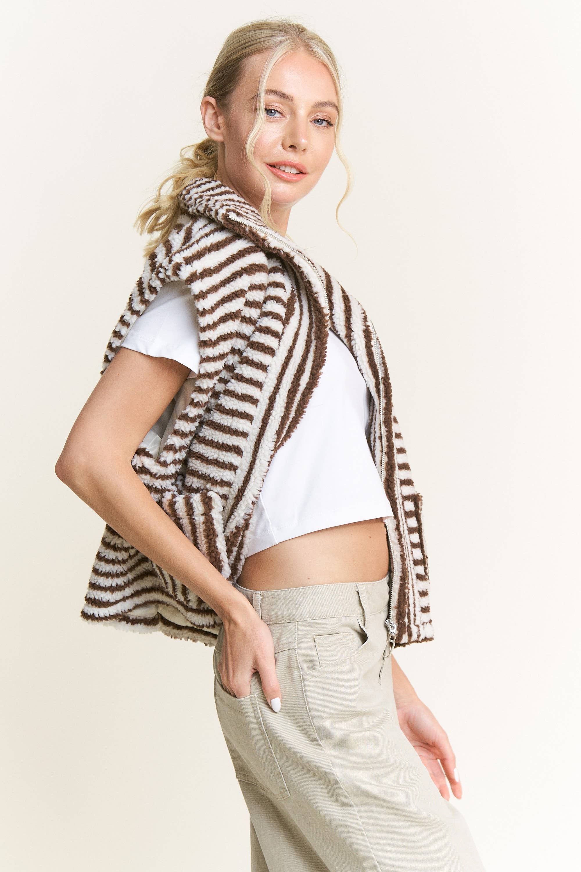 Brown Zara Fuzzy Striped Vest: Brown / Contemporary / L