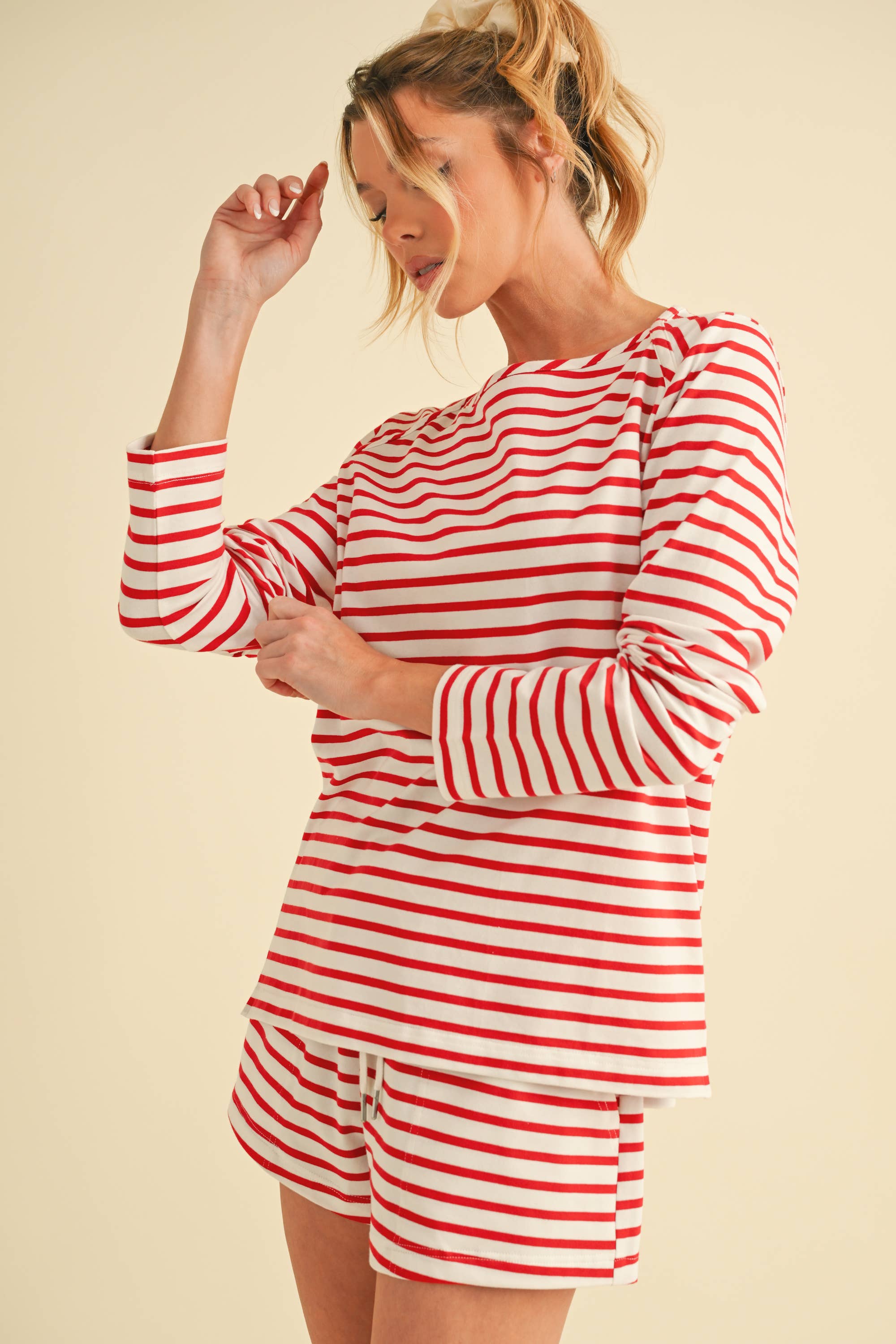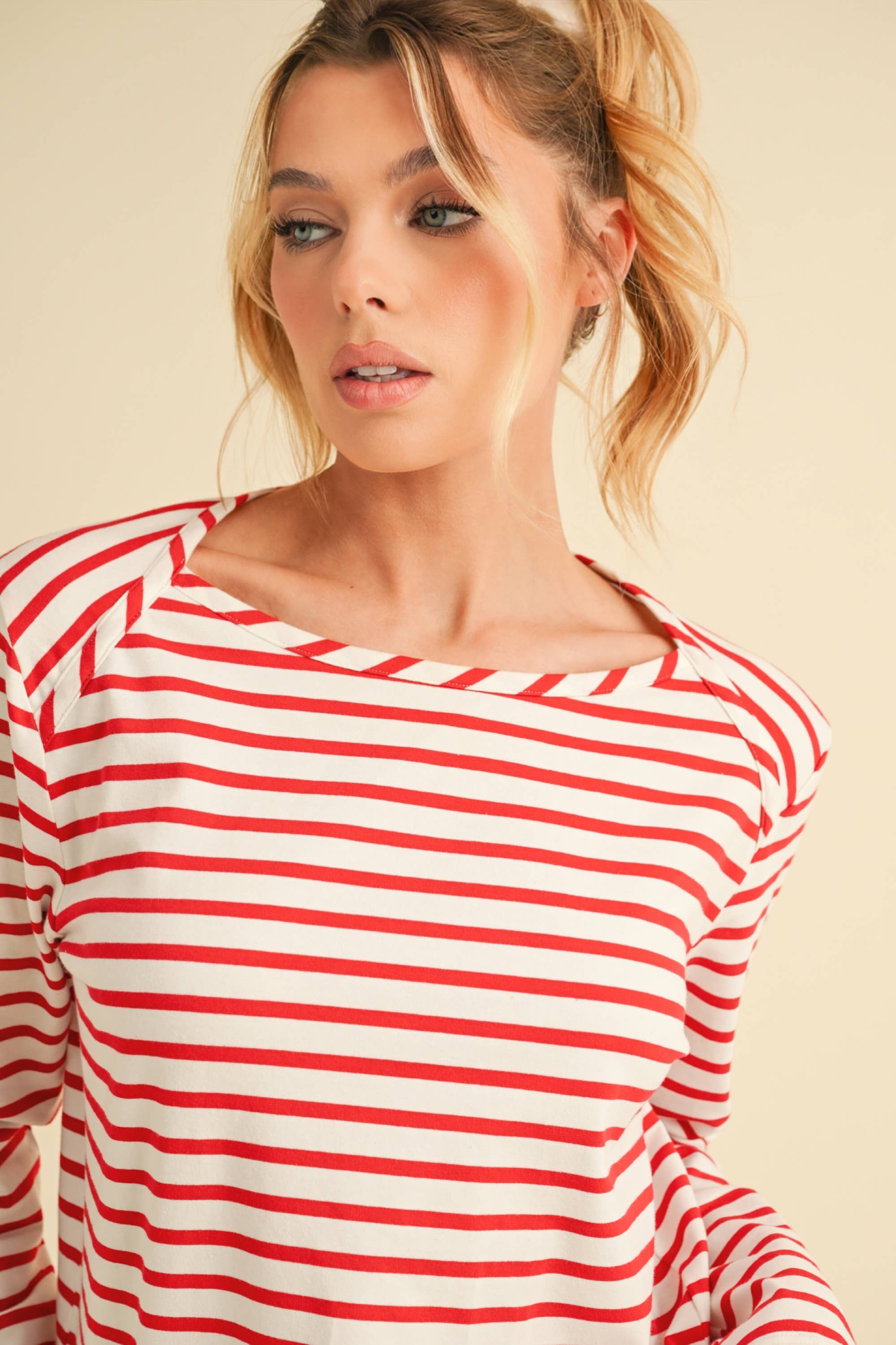 Red and White Striped Long Sleeve Top