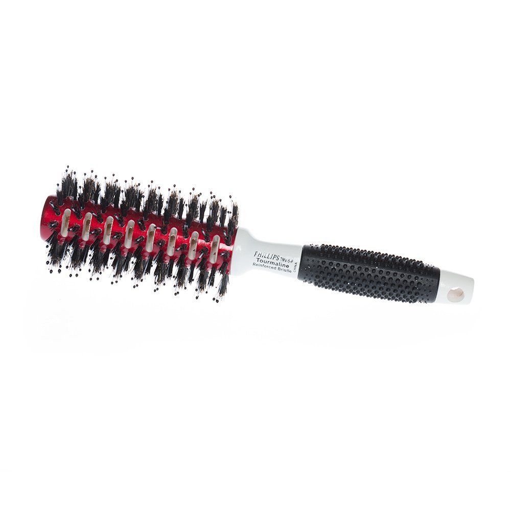 Tourmaline core for even and thorough heating. Vented head for maximum air flow, with a raised rubber grip for control.