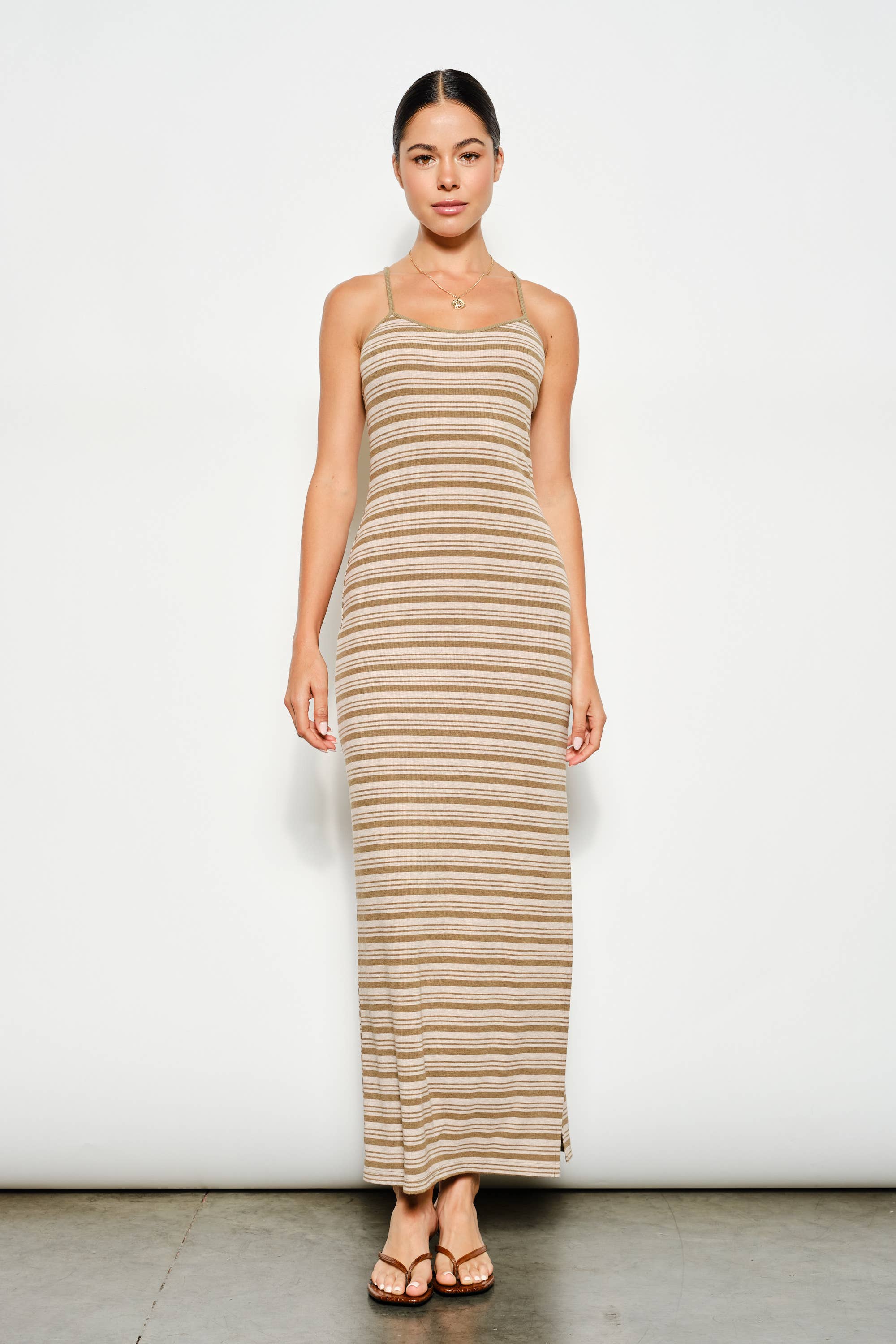 Crew Neck Stripe Sweater & Wide Leg Pants - NAVY