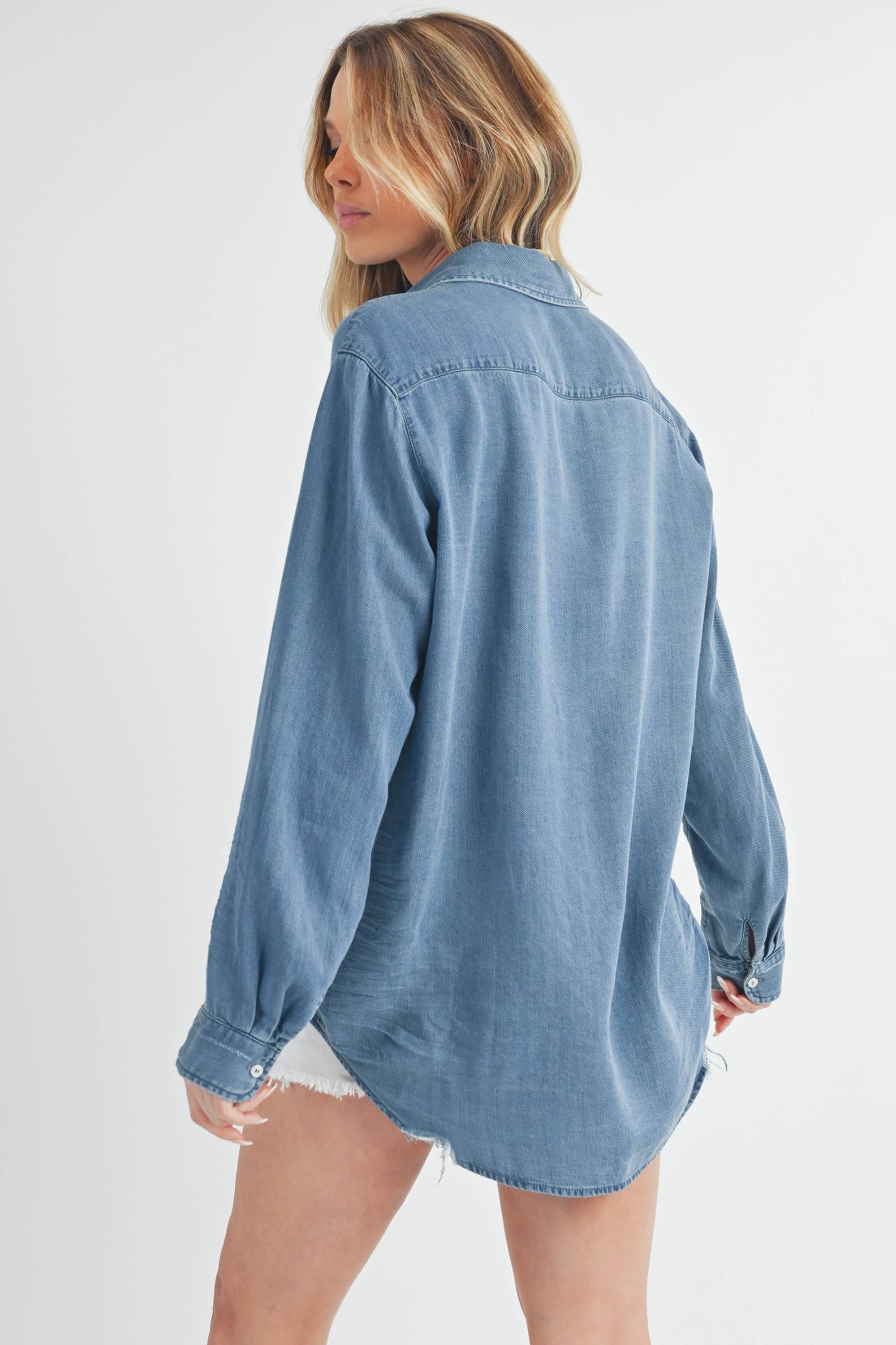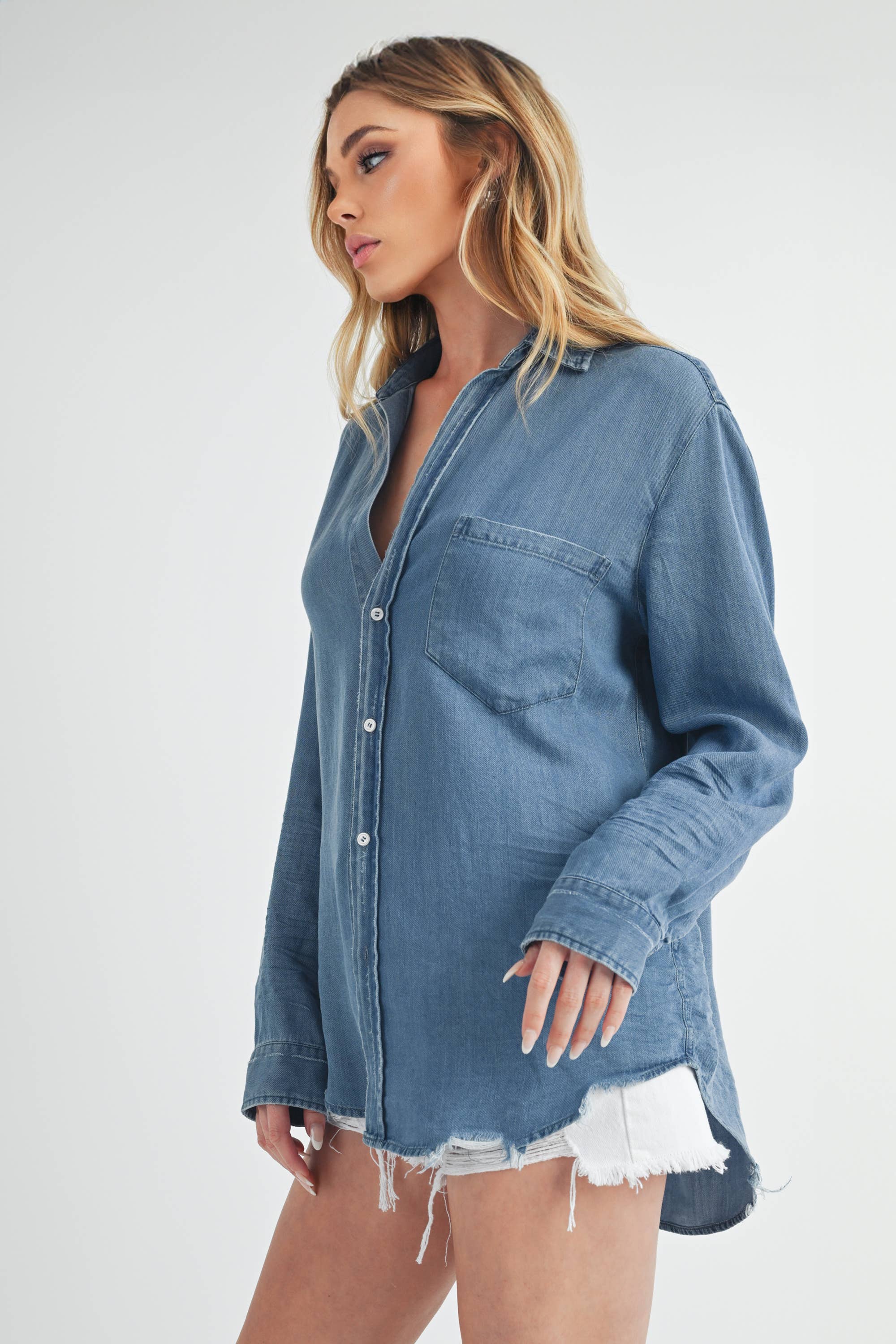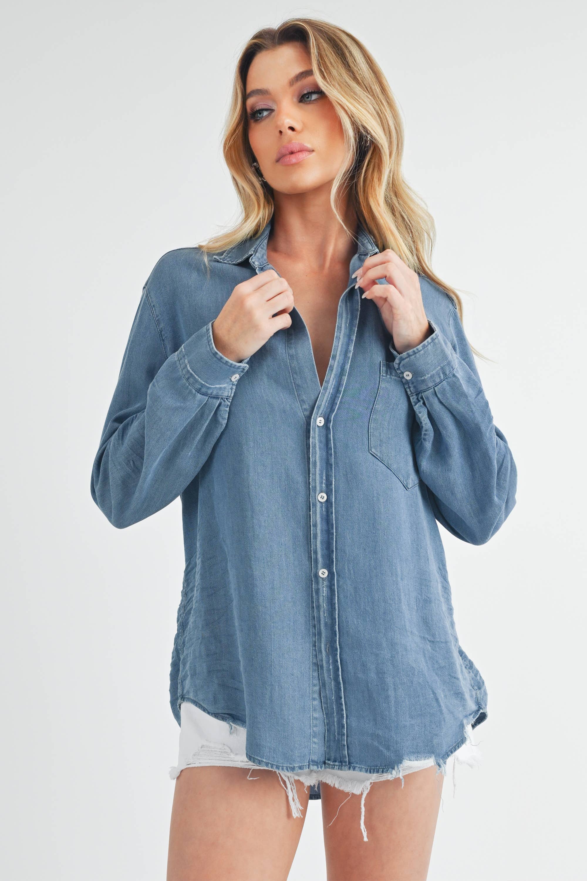 The Ottavia Button Down Shirt Featuring Soft Distressed Denim