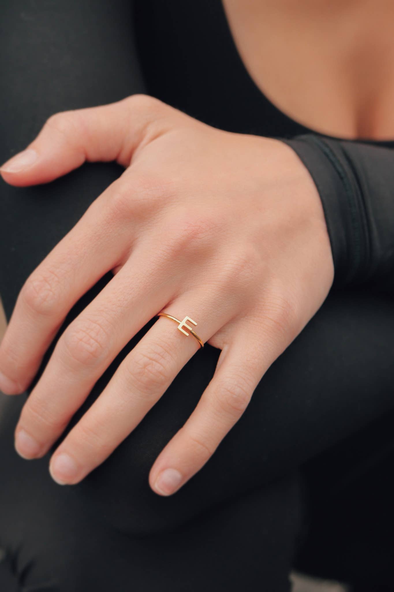 18k Gold Initial Letter Stacking Rings: 7 / D