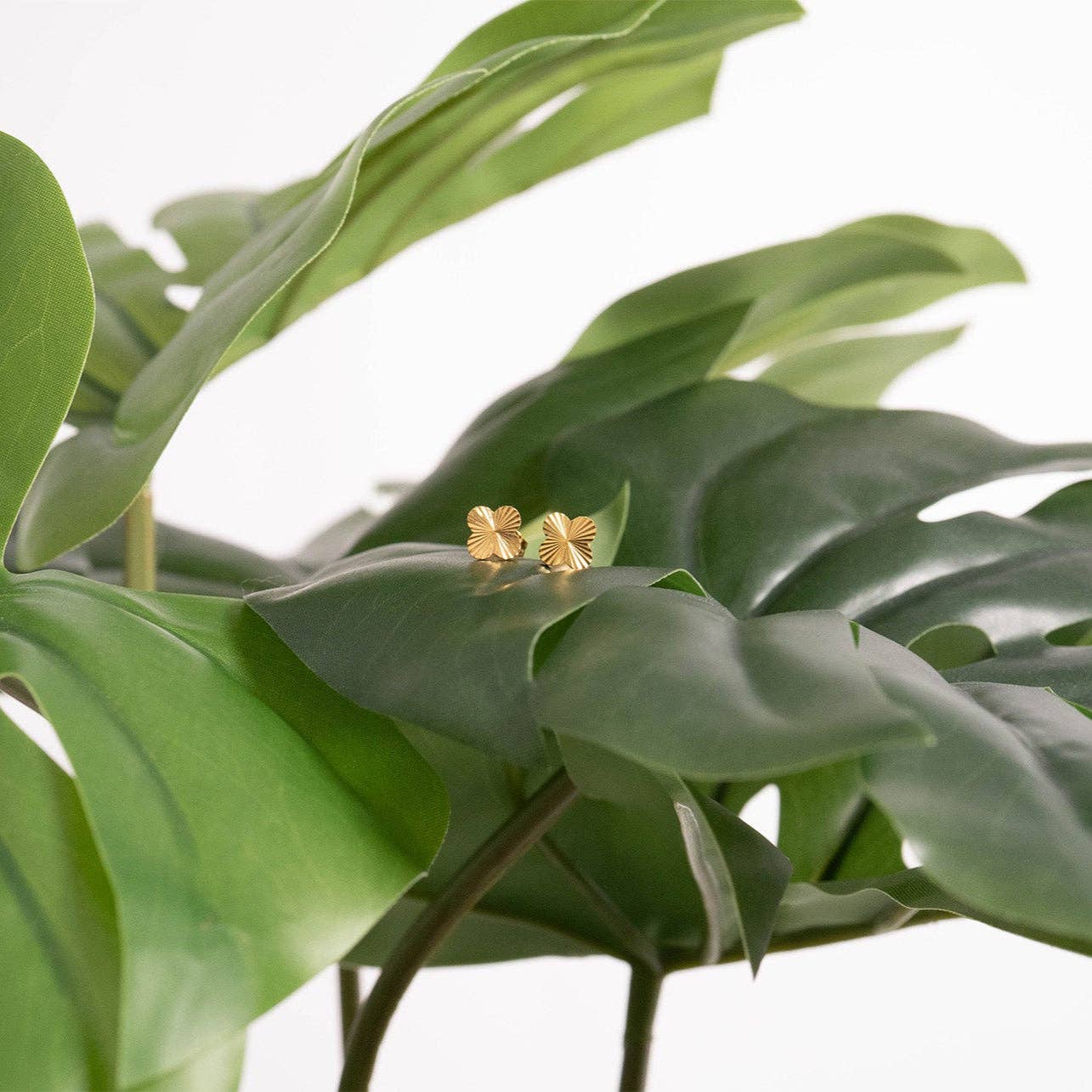 18K Gold PVD Stainless Steel Clover Stud Earrings: Gold