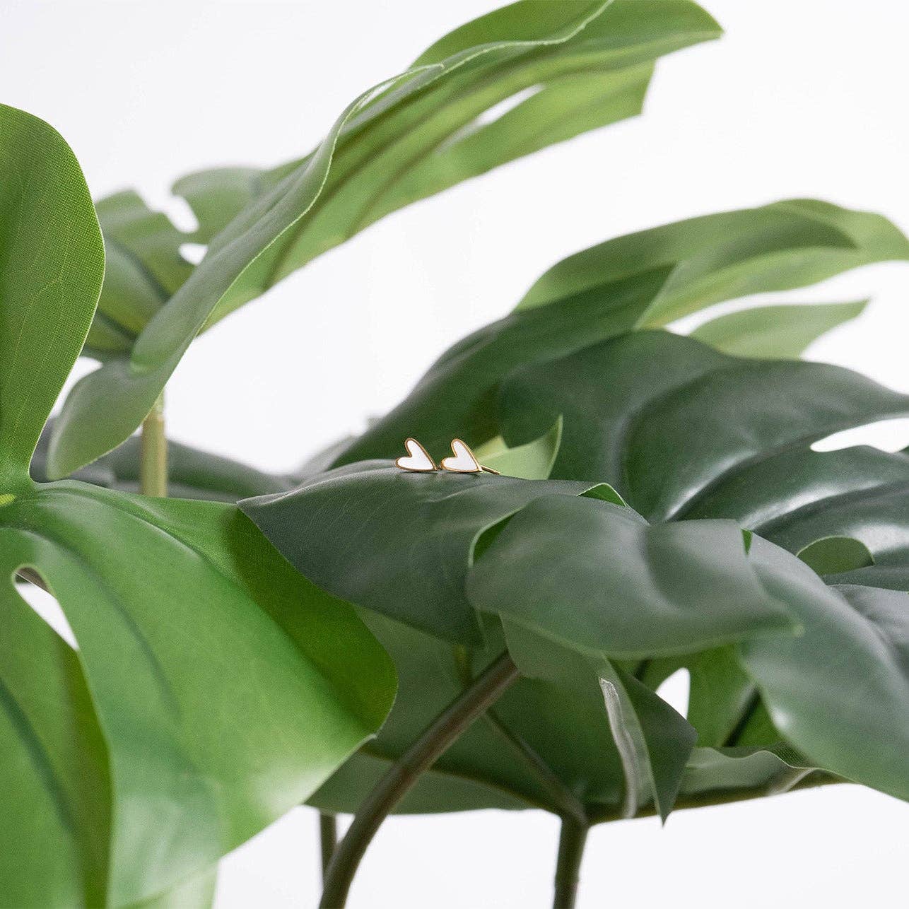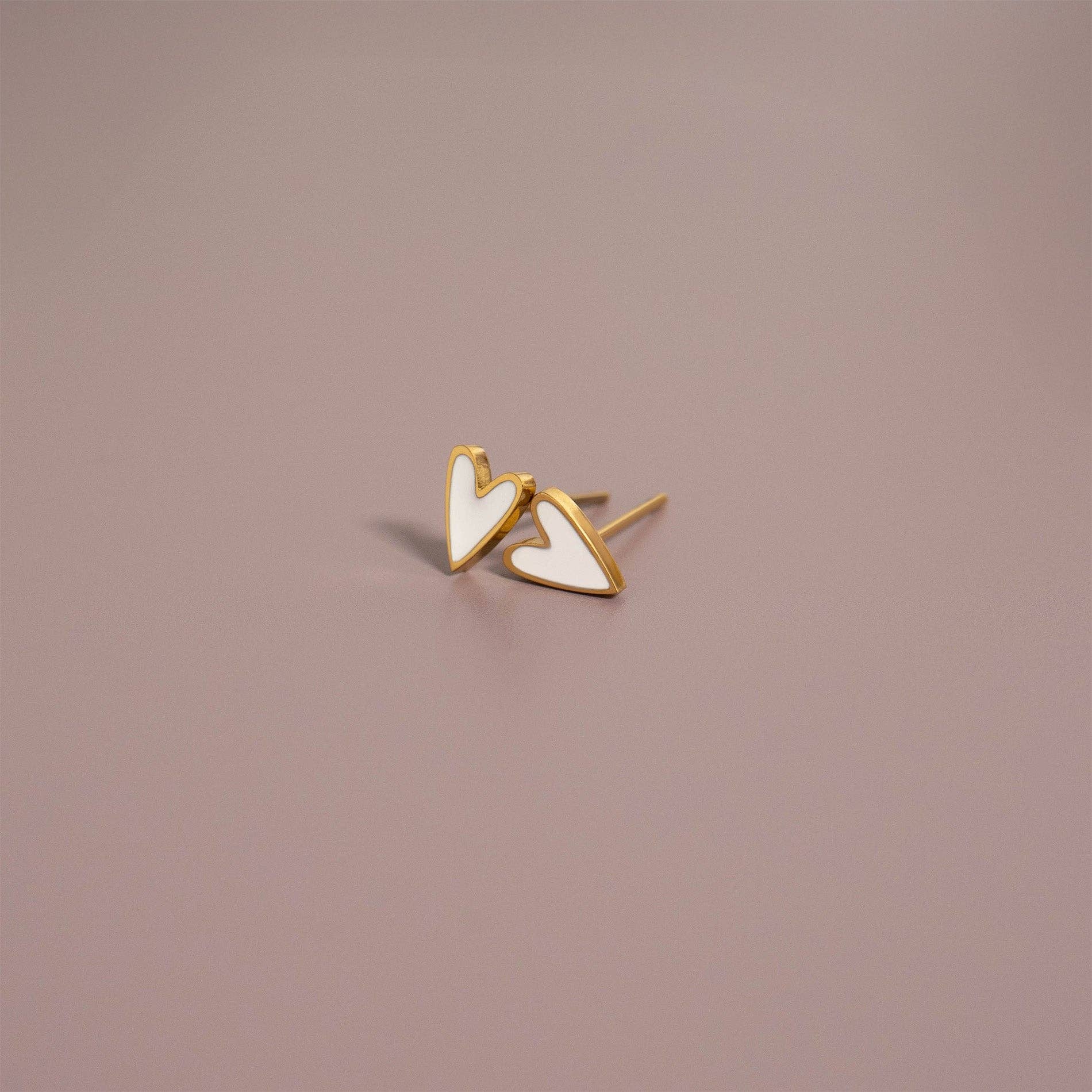 18K Gold PVD Stainless Steel White Heart Stud Earrings: Stainless