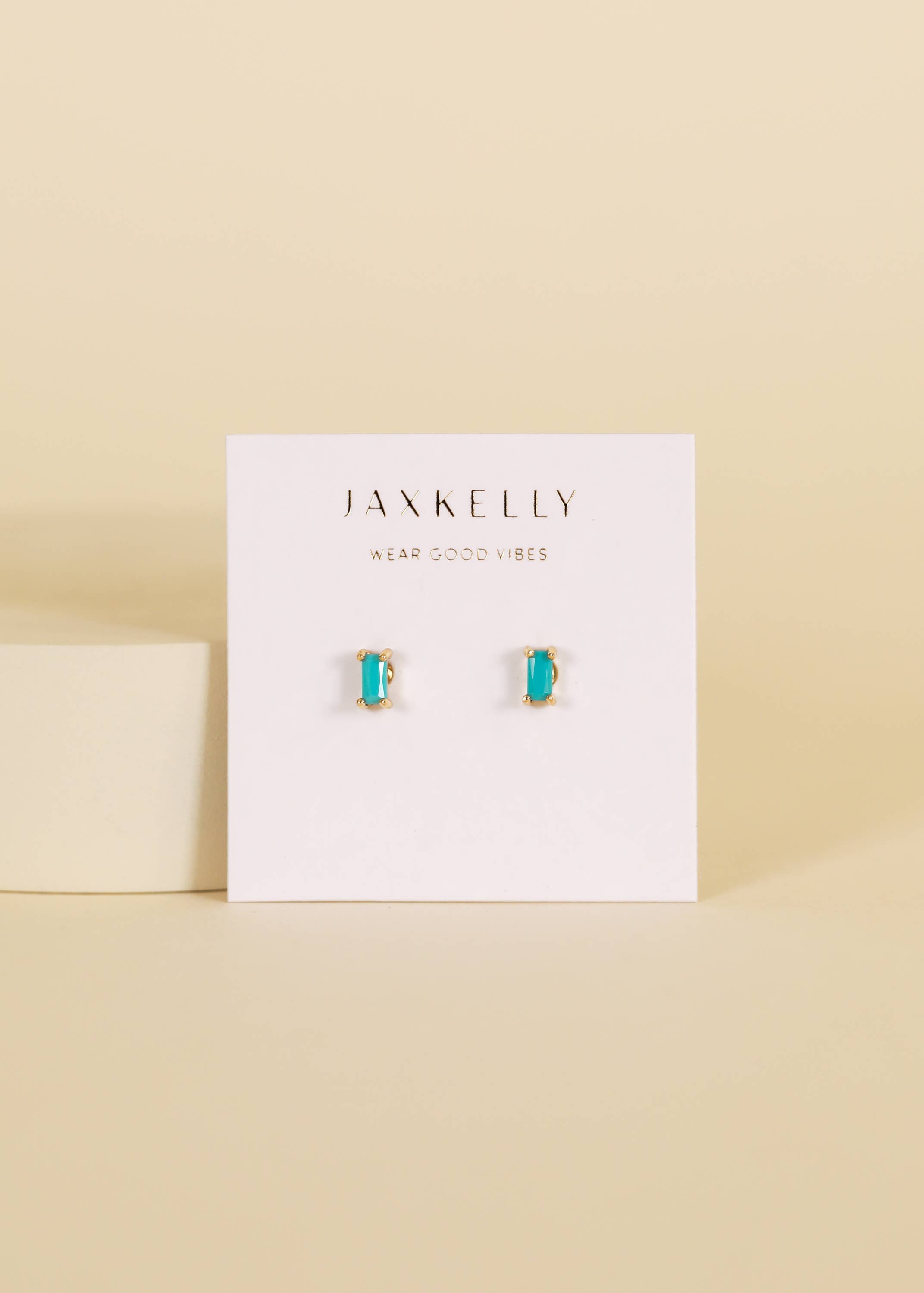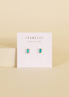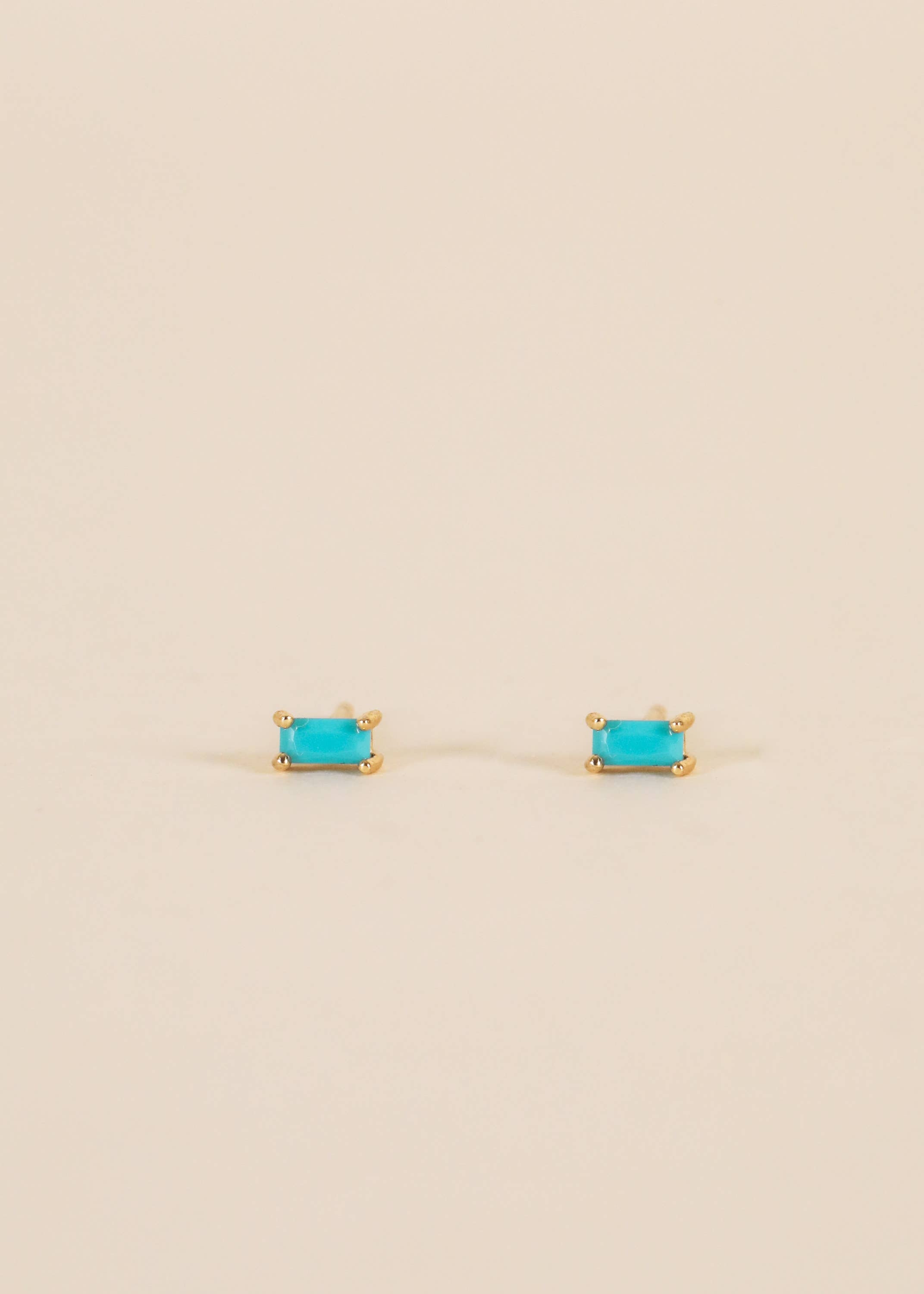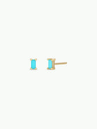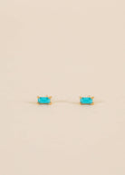 A customer favorite, our turquoise baguette is made for stacking! Featuring a petite polished turquoise stone cut into shape and set in an 18k gold-plated prong earring over sterling silver.