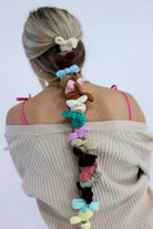 These are our cutest hair ties YET! These come in neutrals, bright colors, soft colors...literally EVERY color. Perfect for literally every and any occasion. Comes in a stretchy spandex material and have a simple bow on it that gives them that feminine touch! They are perfect if you need a tight elastic for your high intensity workout, but still offer a stylish look and this elastic is just fabric with no elastic on the inside to damage your hair. Perfect for pool days, high intensity workouts, or everyday use!