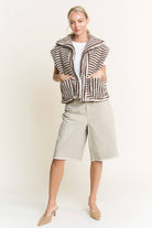 Brown Zara Fuzzy Striped Vest: Brown / Contemporary / M