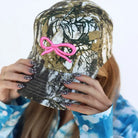Rock a bold statement with our Camo Bow Trucker Hat—the perfect blend of edgy style and everyday wearability. Featuring a striking camouflage pattern paired with an eye-catching bow detail, this trucker hat delivers personality and flair. The structured mesh back keeps you cool while the adjustable fit ensures comfort all day long. Whether you're heading out for adventure or making a fashion statement, this hat transforms any outfit into something unforgettable.