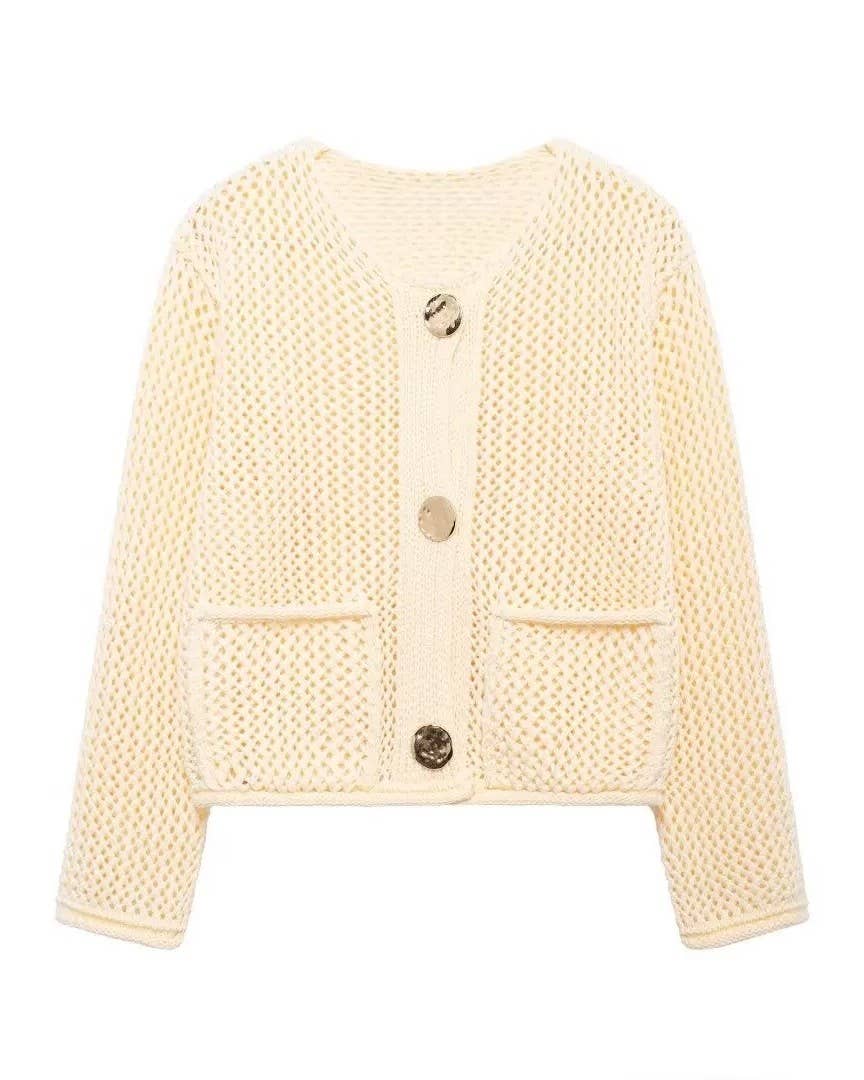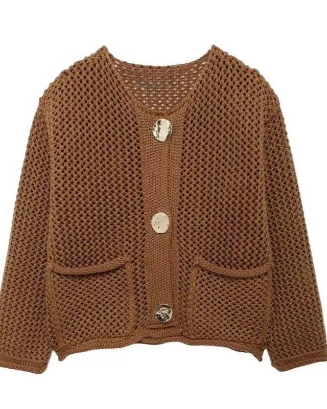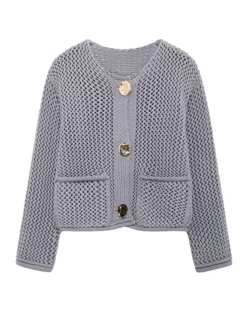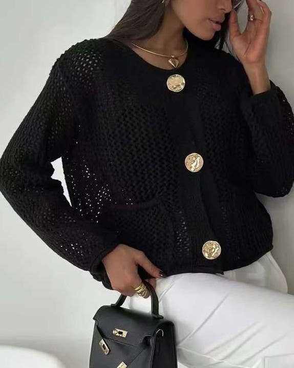 Casual Chunky Knit Sweater Metal Button Cardigan Jacket_RCDQ01631