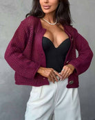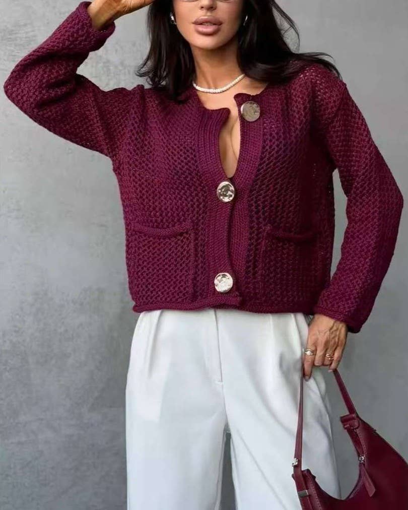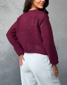 Casual Chunky Knit Sweater Metal Button Cardigan Jacket: Wine-Red / M