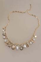Charm Necklace, featuring a stunning combination of multi-sea shell, starfish, puka, and pearl charms. This playful yet elegant necklace brings together natural-inspired elements, each charm adding a unique touch that evokes beachy vibes and coastal beauty. Crafted with care, this necklace is perfect for adding a touch of the seaside to your look.