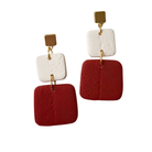 Make a bold statement with these crimson and white clay square earrings. Handcrafted with care, their striking color combination and clean, minimalist design make them a versatile accessory for both casual and dressy looks. Lightweight and stylish, they’re the perfect addition to your jewelry collection.