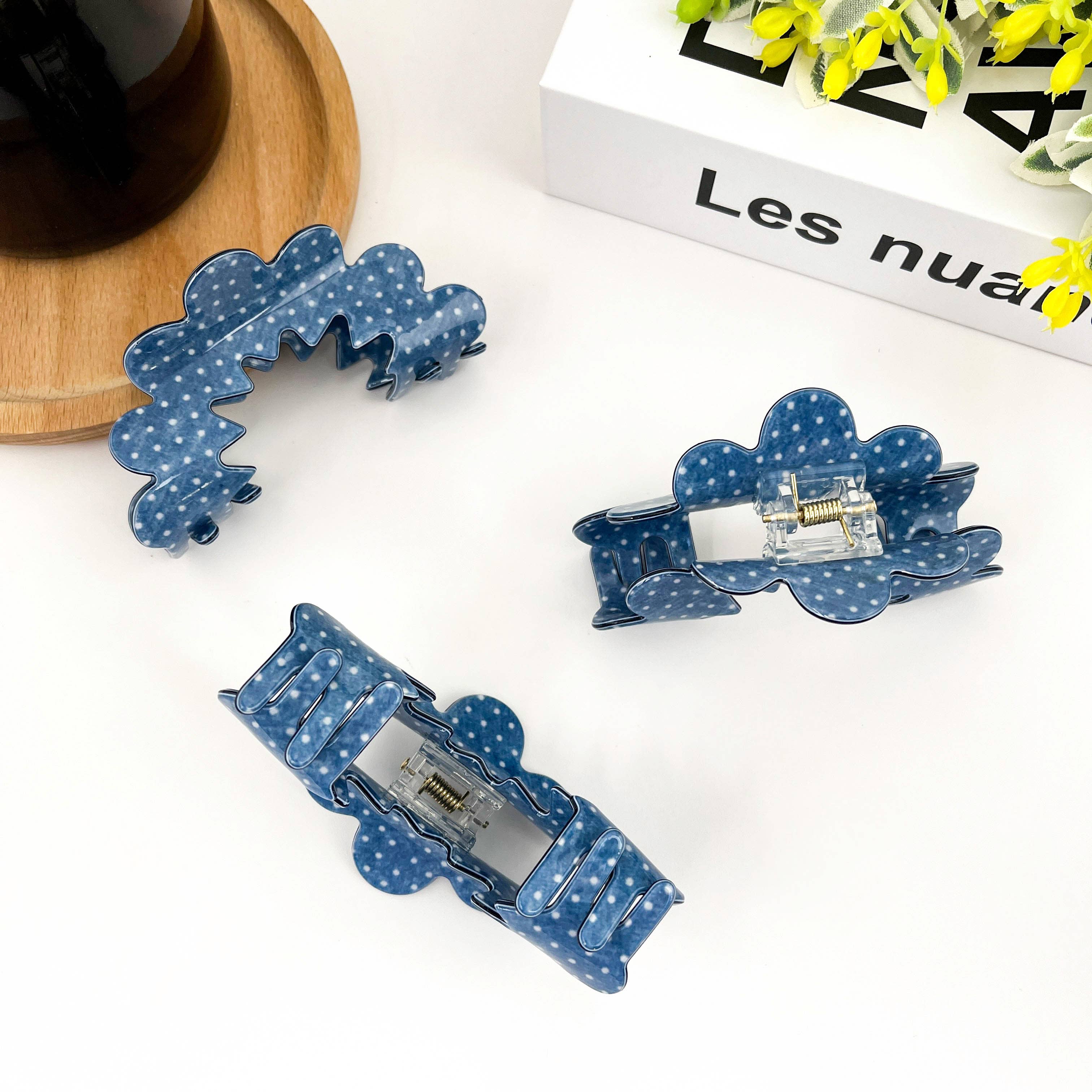 Elegant Blue Wave Hair Clip: Dark Blue
