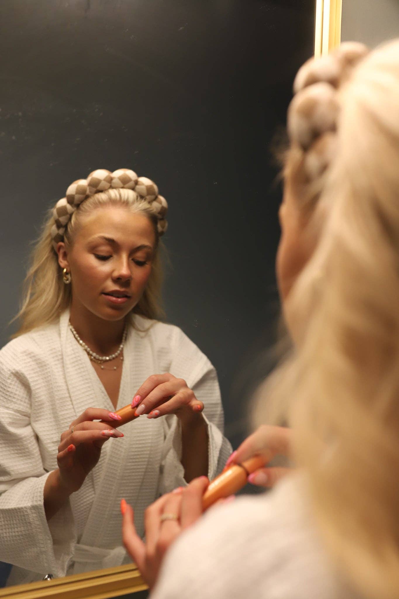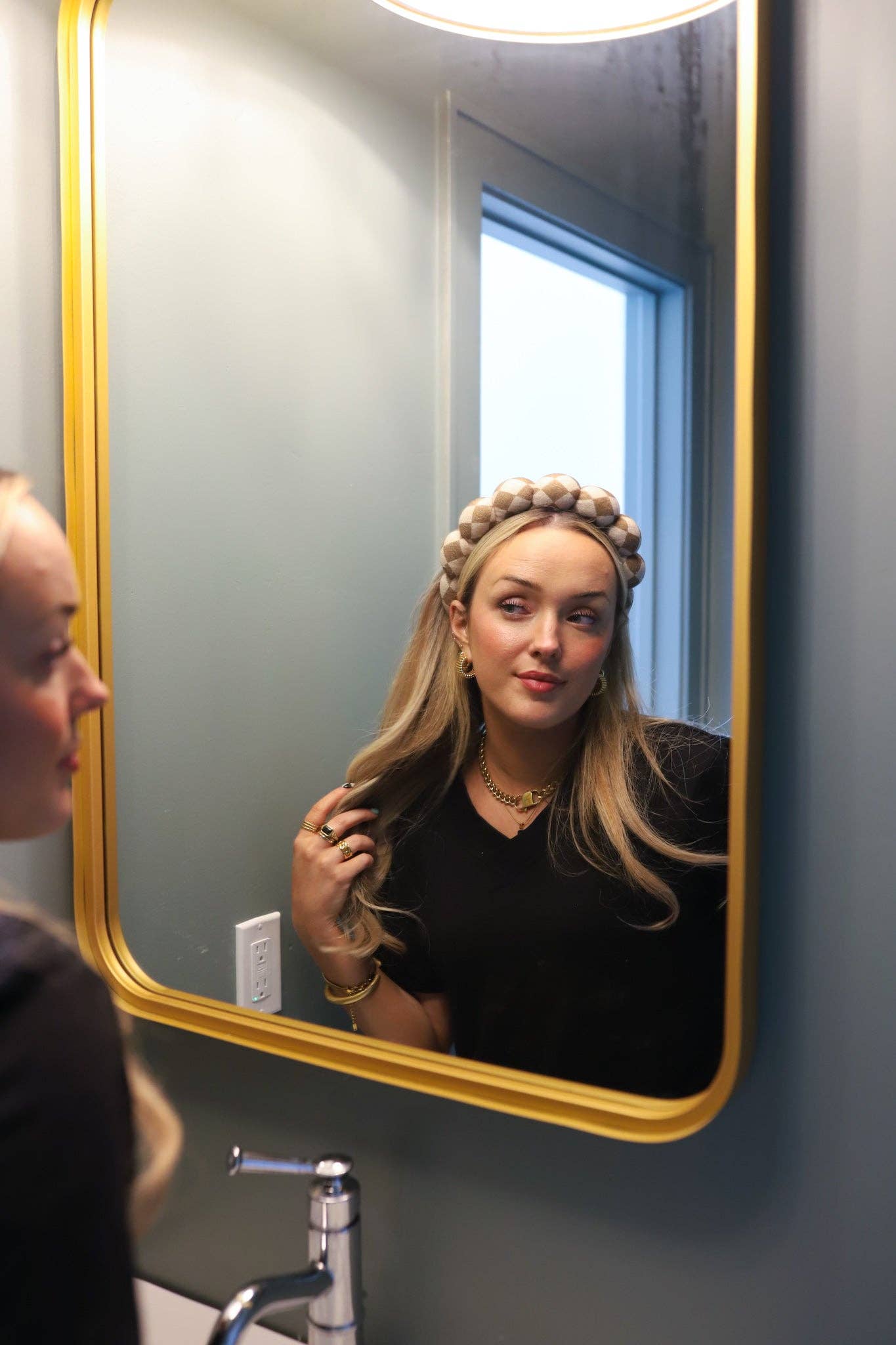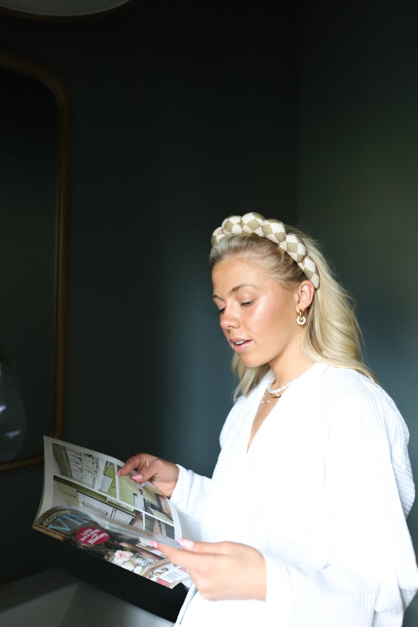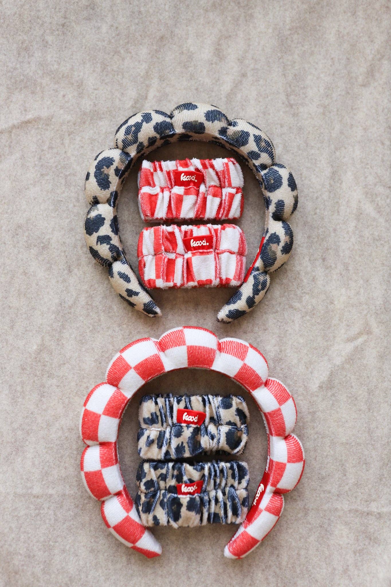 Our GRWM headbands now come with matching exclusive 'wash yo face' wristbands. This towel headband is perfectly designed to pull your hair back while putting on makeup, doing skincare and anything else where you want your hair out of your face. The soft plush towel-like microfiber material helps limit creasing in your hair while wearing, meaning it won't ruin your hair while wearing it. KAXI EXCLUSIVE DESIGNED towel woven material designs. Each design was hand drawn by our KAXI designers, and you could say we are obsessed with them. Hand wash only. Air dry only.