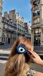 each hair brush is made of individually cut acetate pieces. featuring the iconic original evil eye design, hand-painted by our solar eclipse artists;