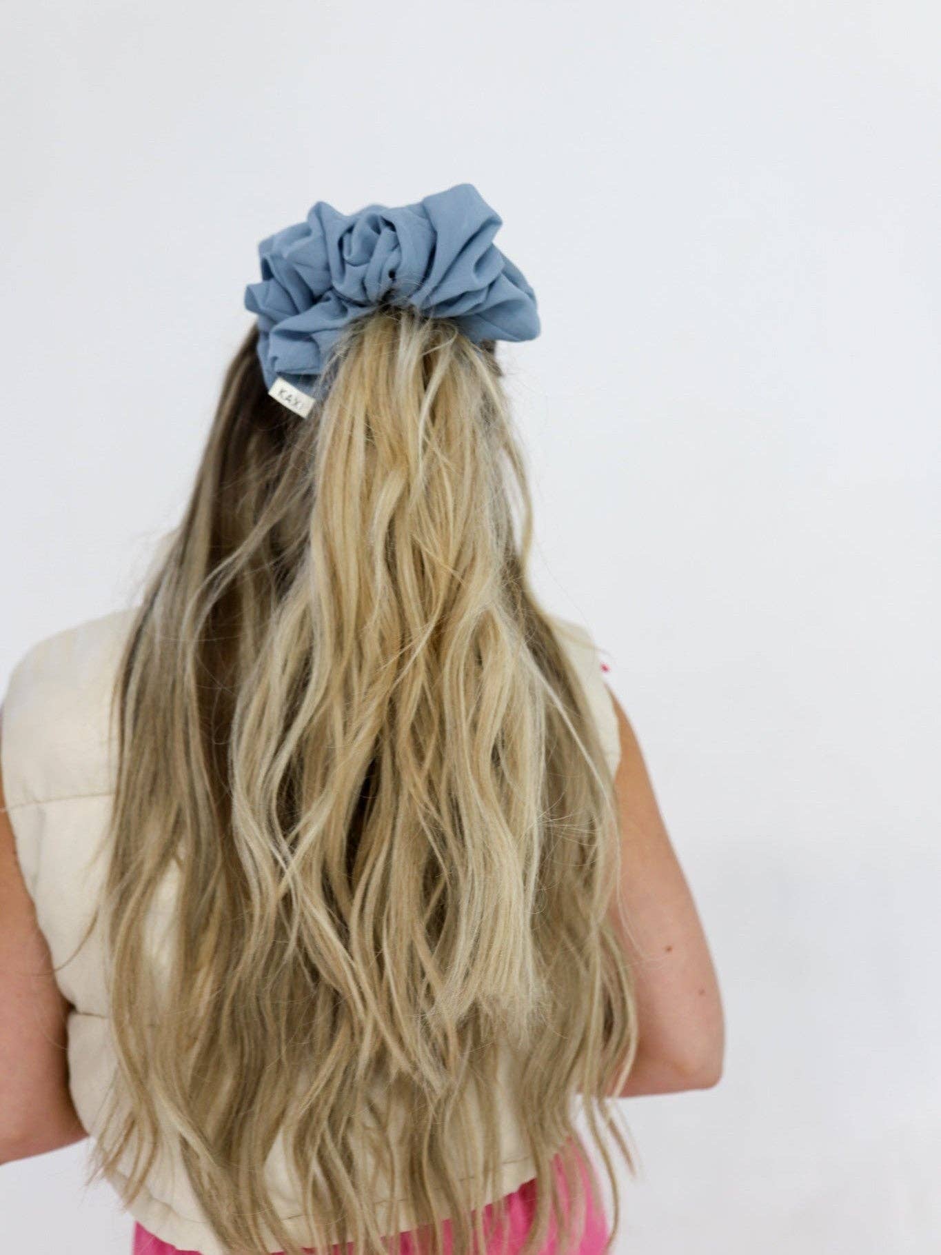 the bigger the better. take your everyday scrunchies and make them 5x the size for the most feminine statement piece. this chiffon lightweight material wraps around any hair length with our exclusive kaxi tag added on.