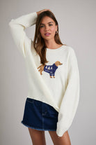 LONG SLEEVE CREW NECK DOG WITH SWEATER GRAPHIC SWEATER: IVORY / M