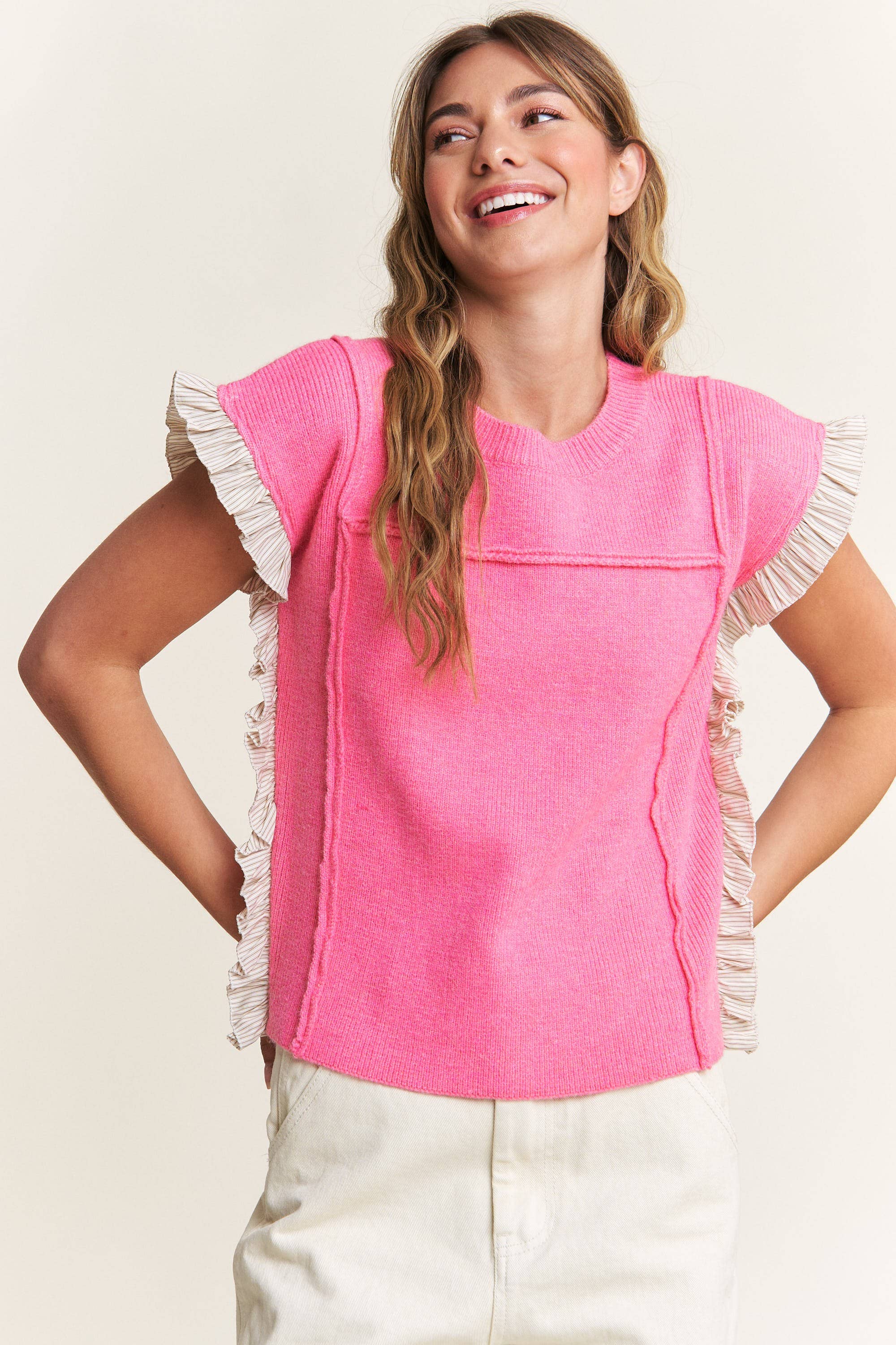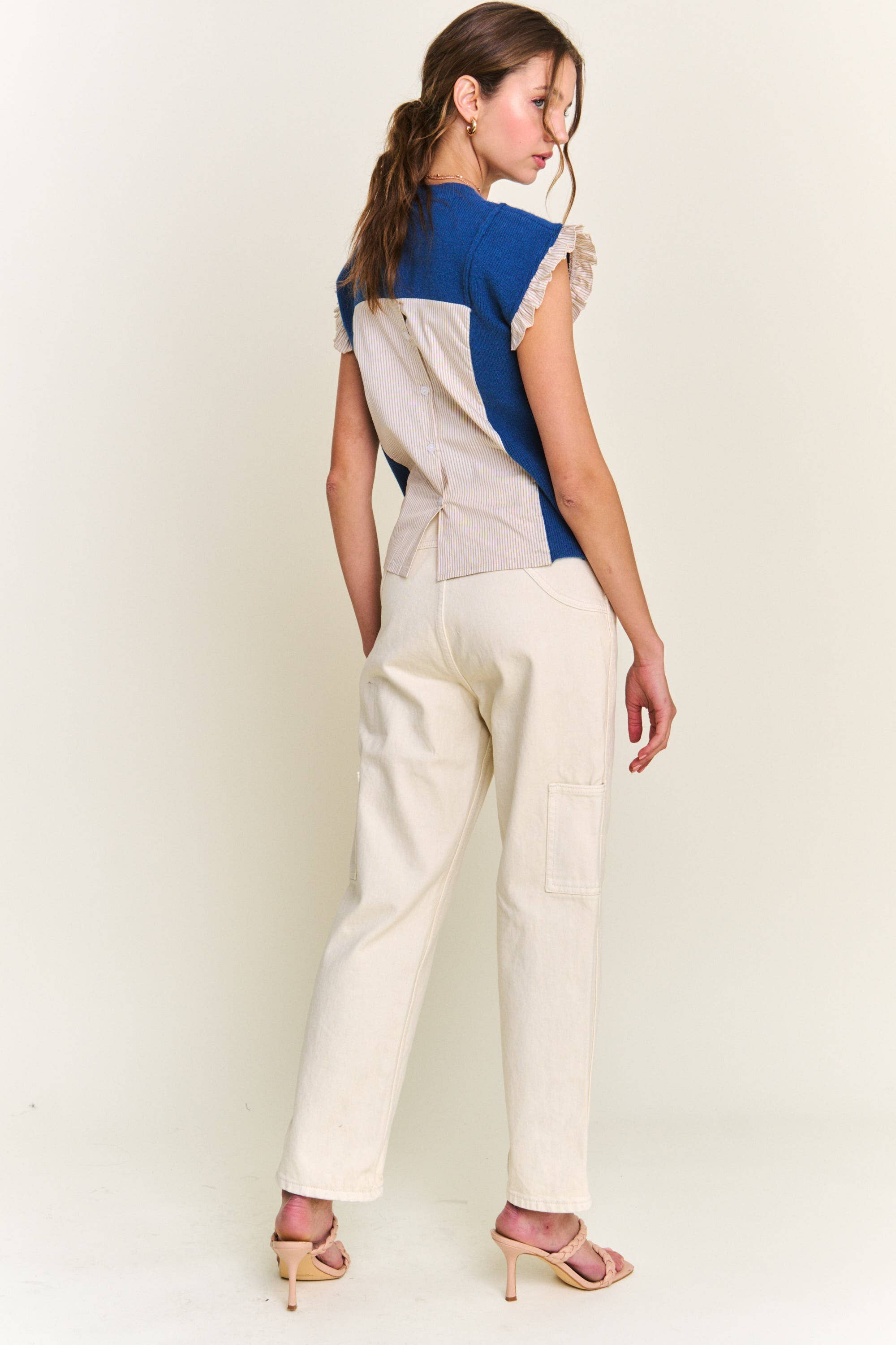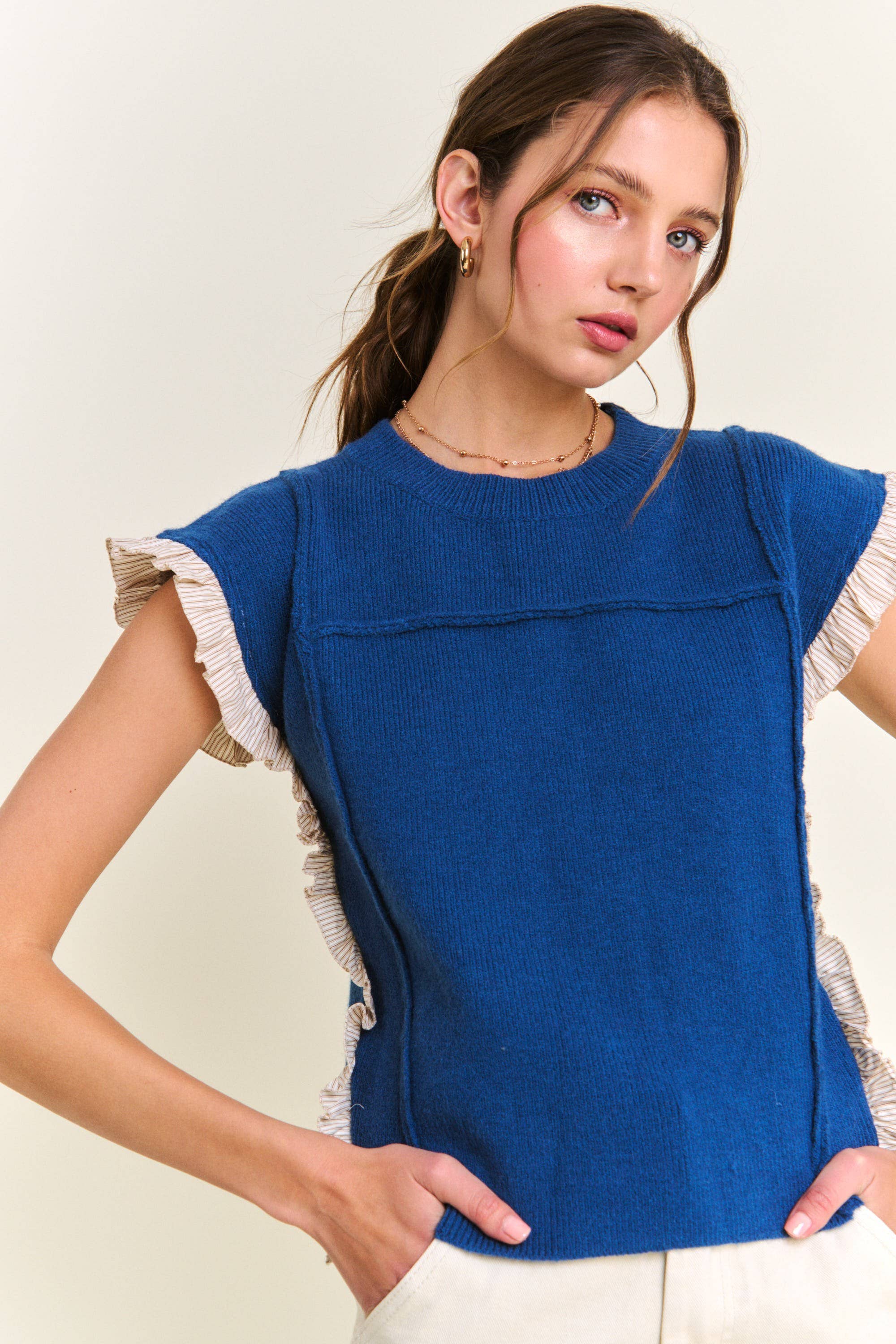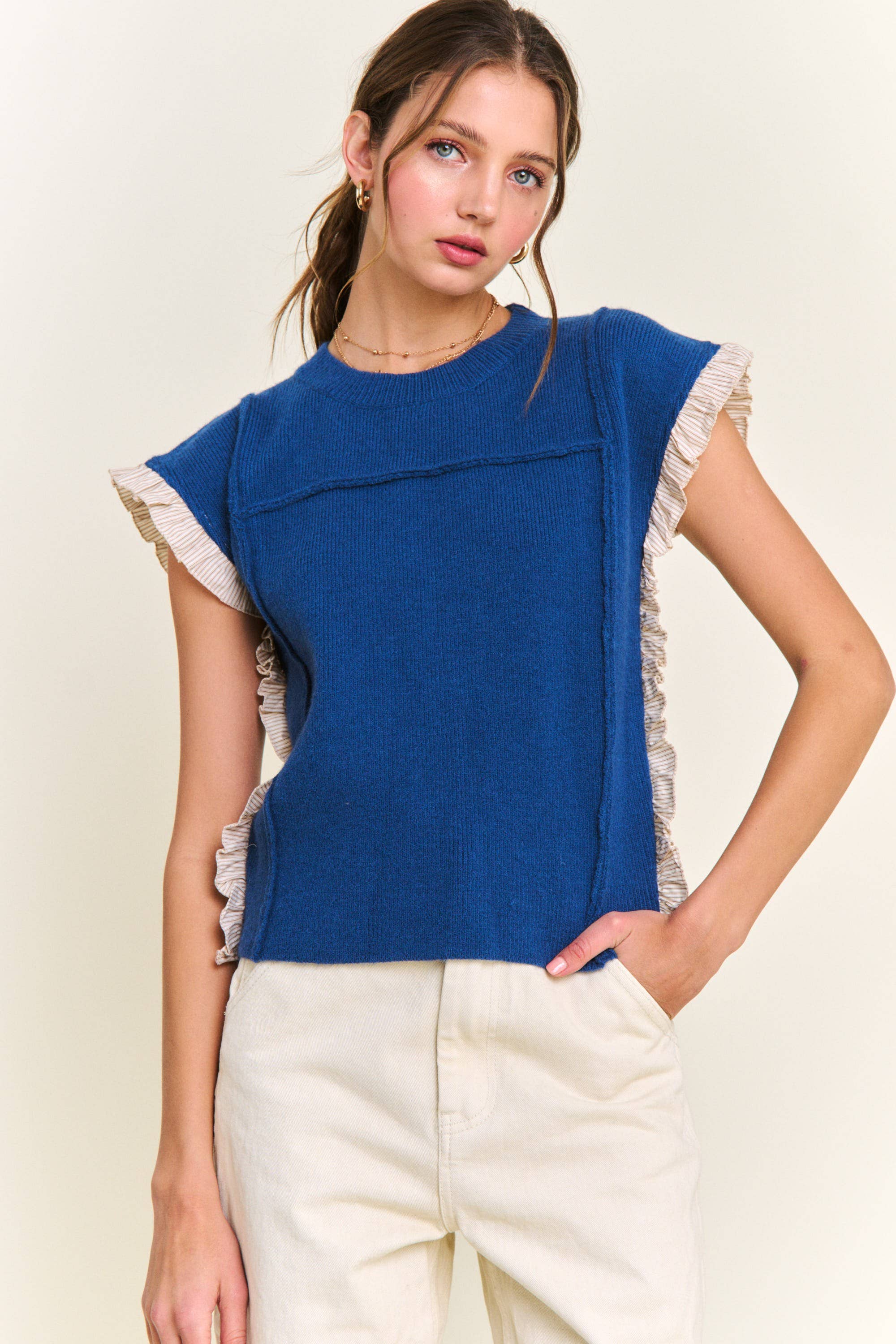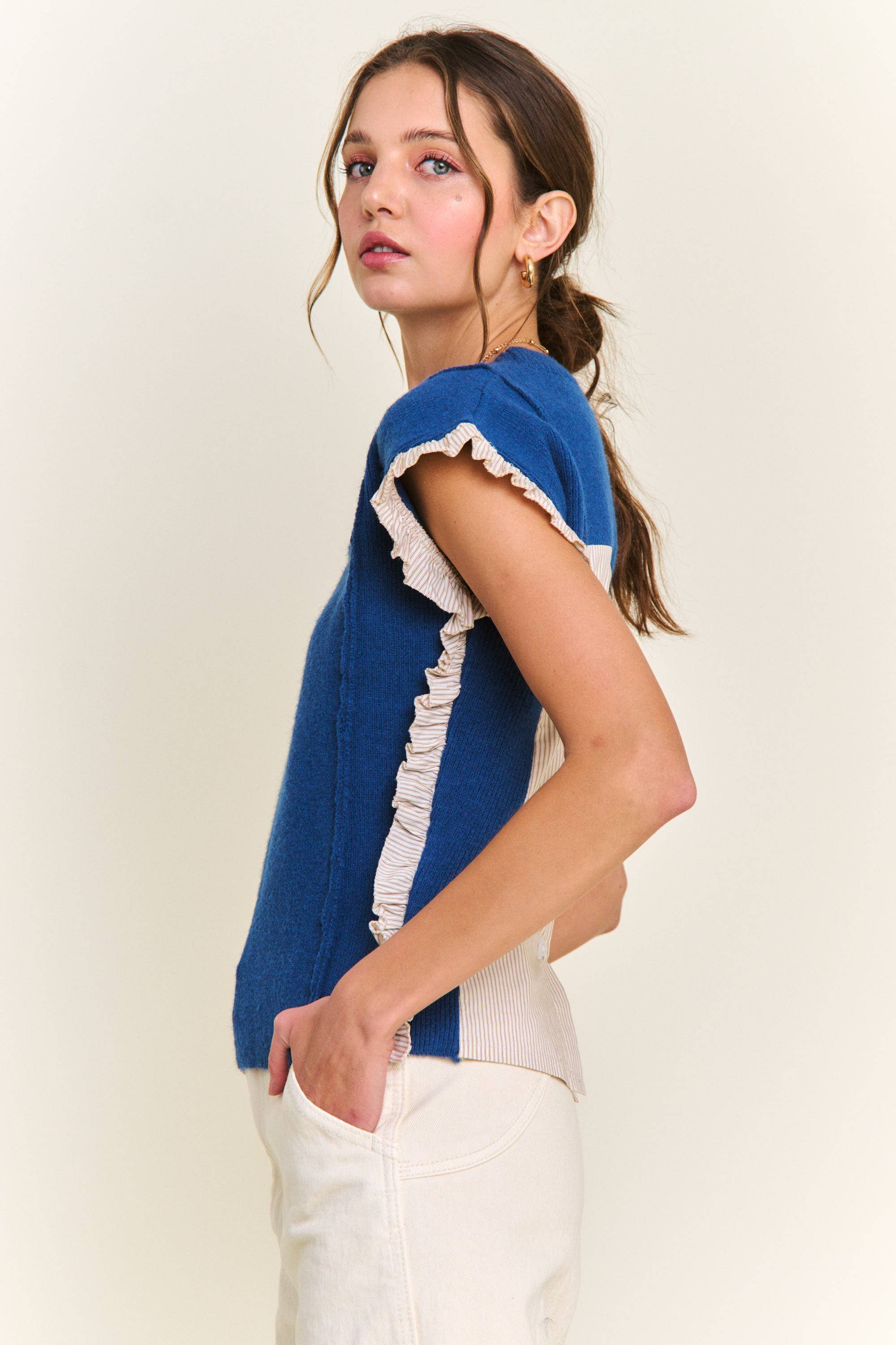 Navy Contrast Multi-Colored Striped Sweater Vest: Navy / L