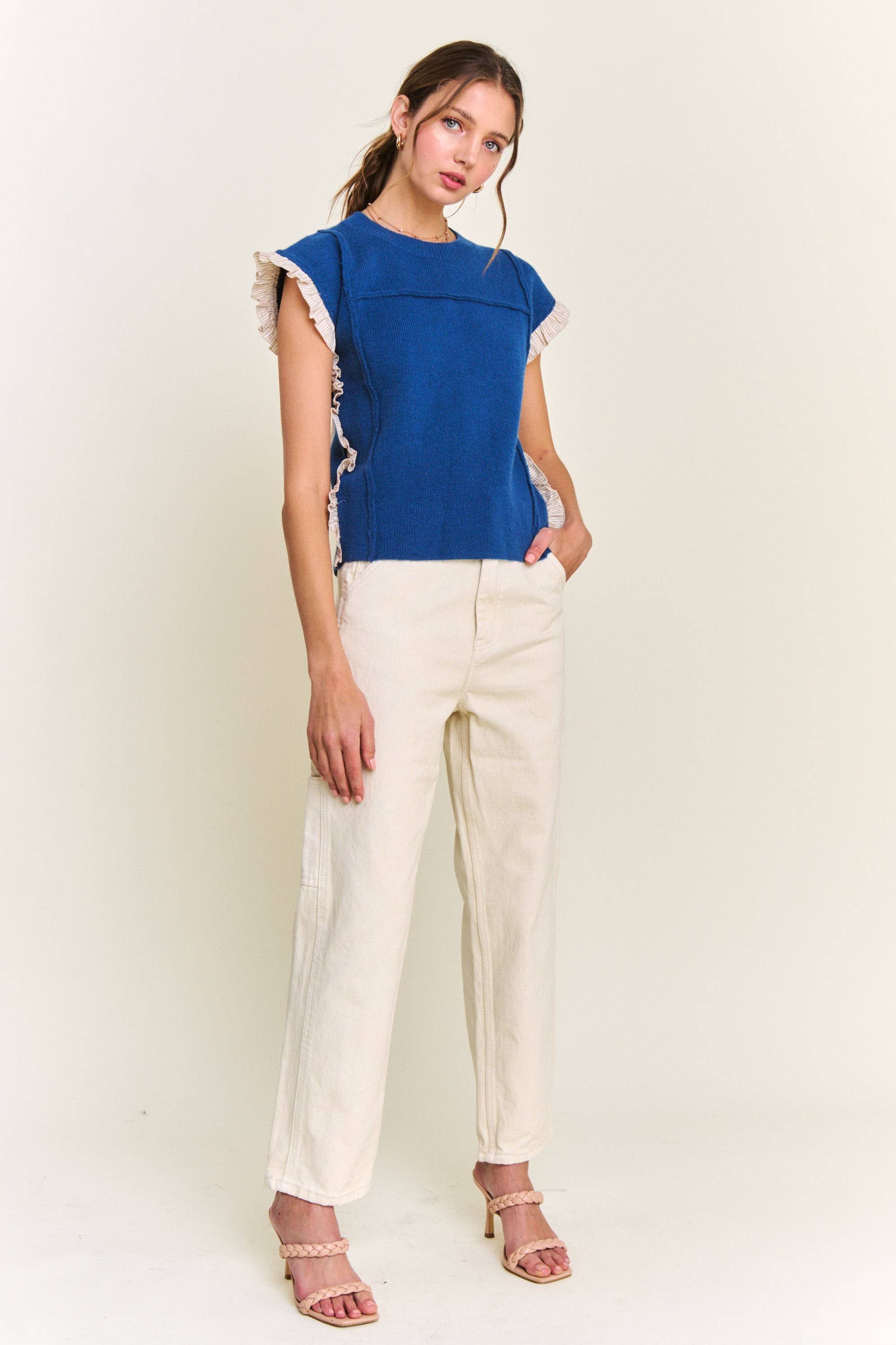 Navy Contrast Multi-Colored Striped Sweater Vest: Navy / S