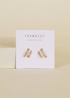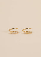 Updated elegance for our spiral earrings. This earring gives the illusion of 2 petite hoops, one sparkling and one gold.