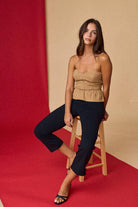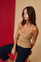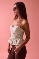 PT19026 Strapless Corset Peplum Top: TAUPE / M