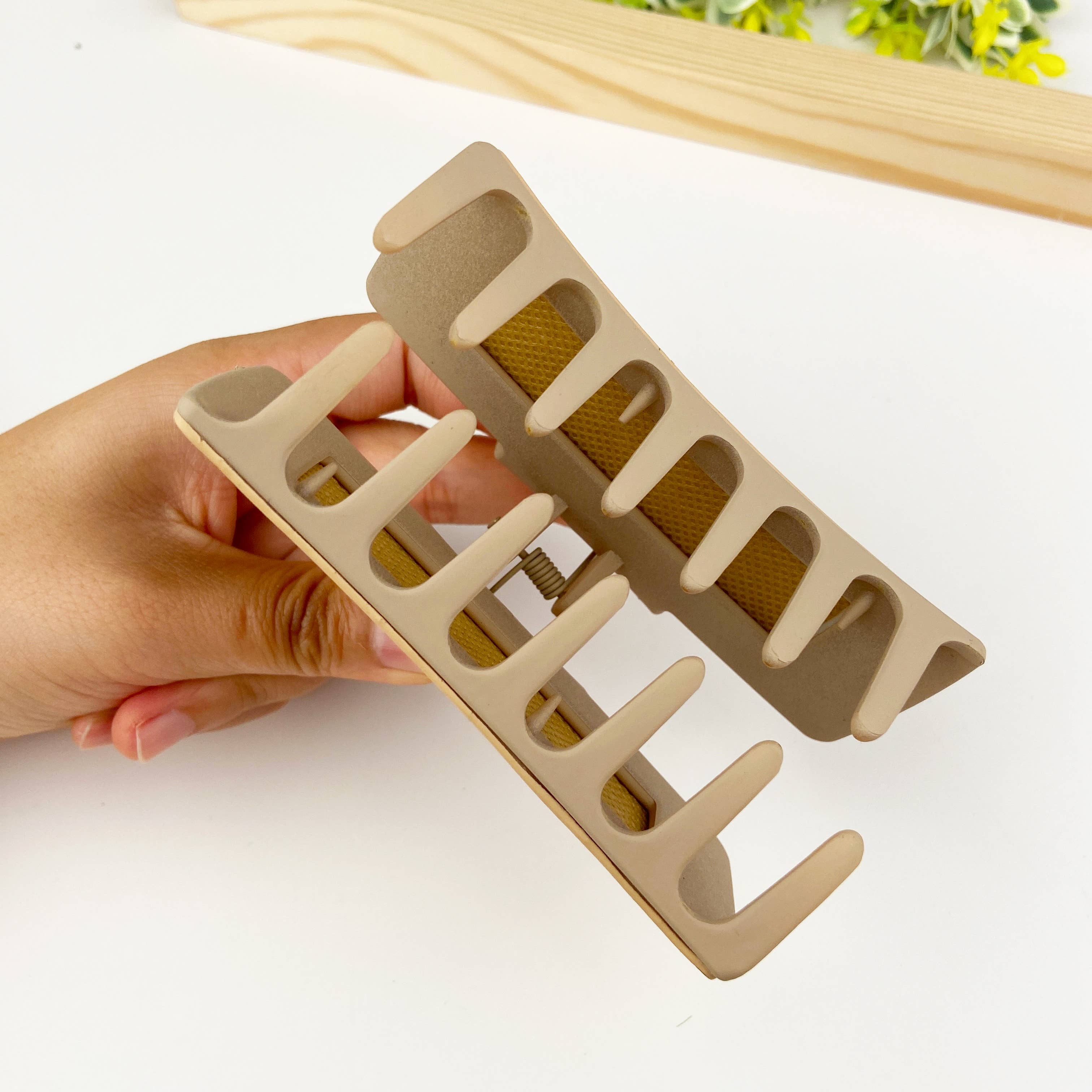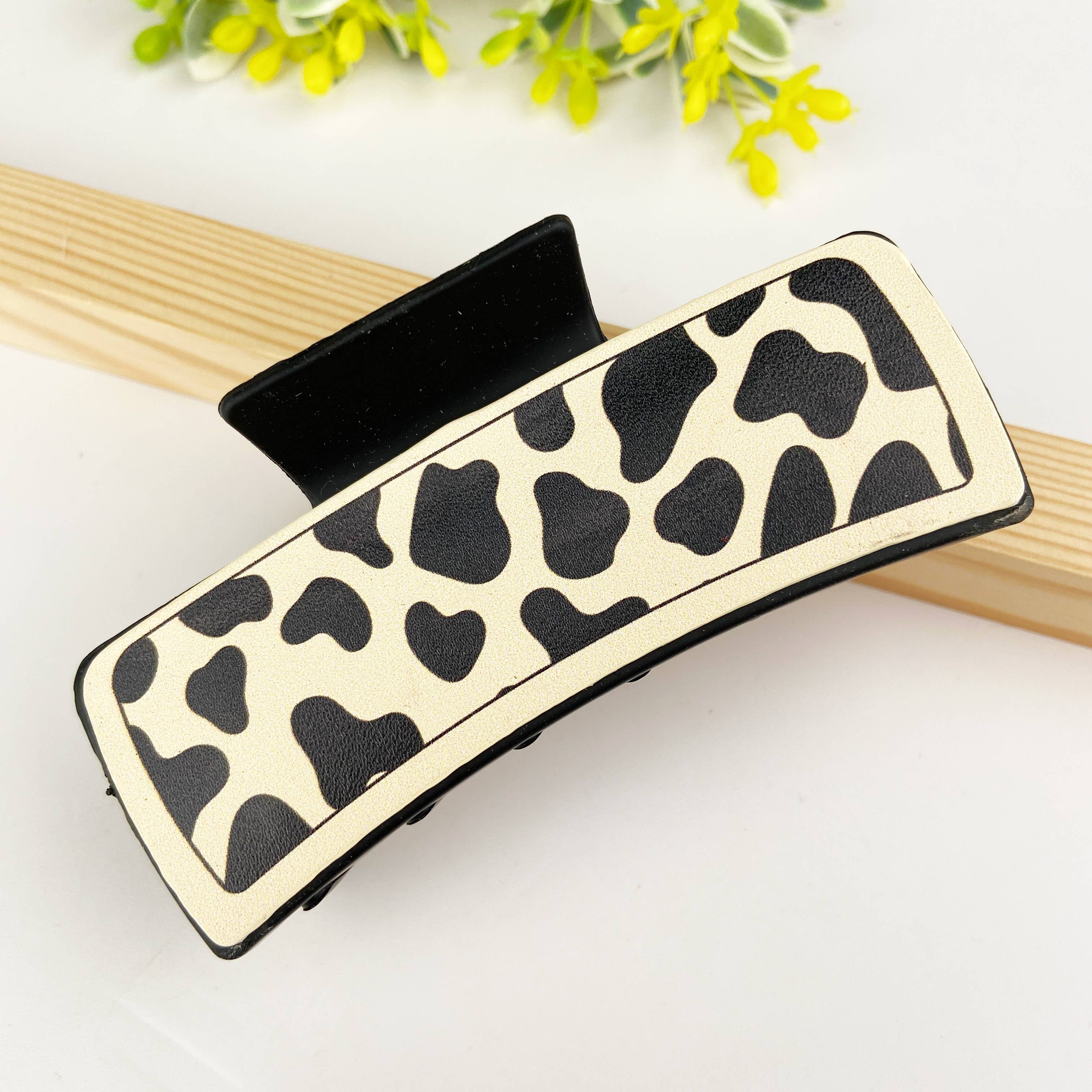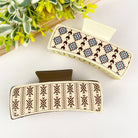 The design of the hair clip is minimalistic and understated, with clean lines and a classic shape. It often features a rectangular or oval shape that can easily hold your hair in place. The retro-inspired element may come from subtle detailing, such as embossed patterns, stitching, or antique-style finishes.