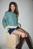 Our model is rocking a size small in this Roll Up Neck Long Sleeve Stripe Sweater Top, and honestly, we're obsessed. The playful stripes and cozy long sleeves make it the perfect piece for layering or going solo. That rolled-up neckline? Chef's kiss. It's giving effortless style with just the right amount of personality.