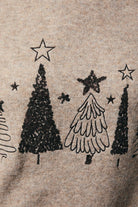 ROUND NECK LONG SLEEEVE SEQUIN TREES SWEATER: OATMEAL / S