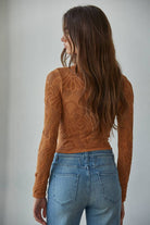 This knit jacquard top features a see-through fishnet overlay, crafted from a 92% nylon and 8% spandex blend. The material is a stretchy knit that offers comfort and flexibility, making it perfect for layering or a stand-alone statement piece. The intricate jacquard pattern adds texture and visual interest, while the mock neck and long sleeves provide a sophisticated look.