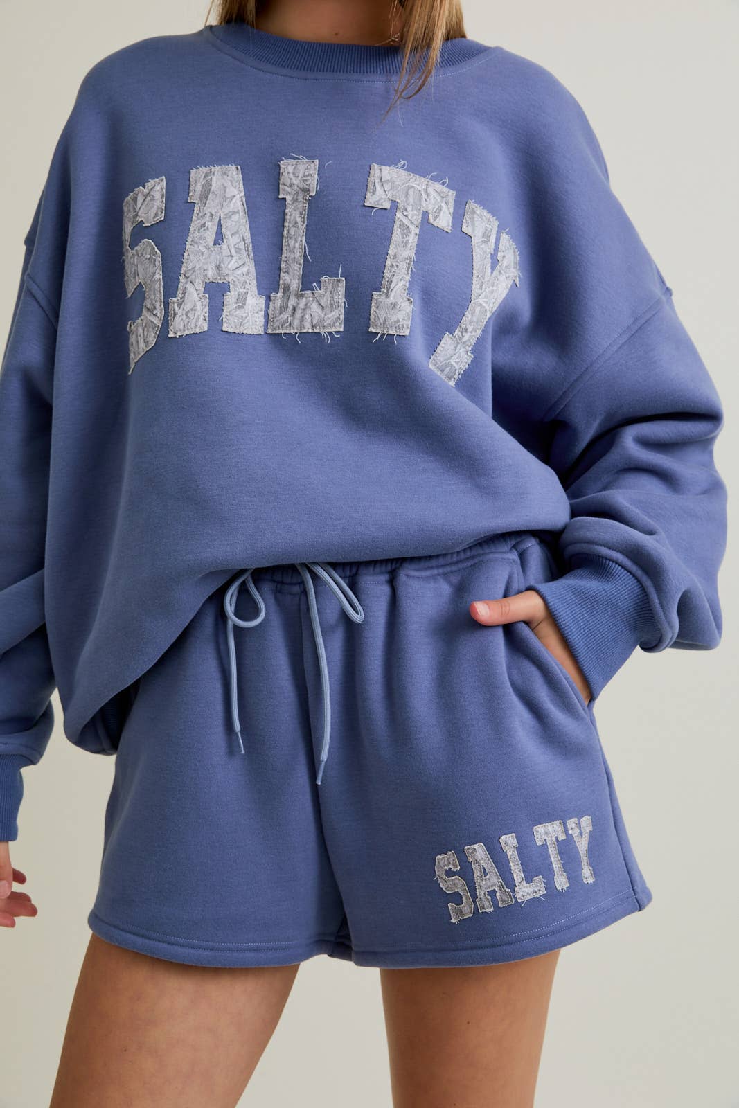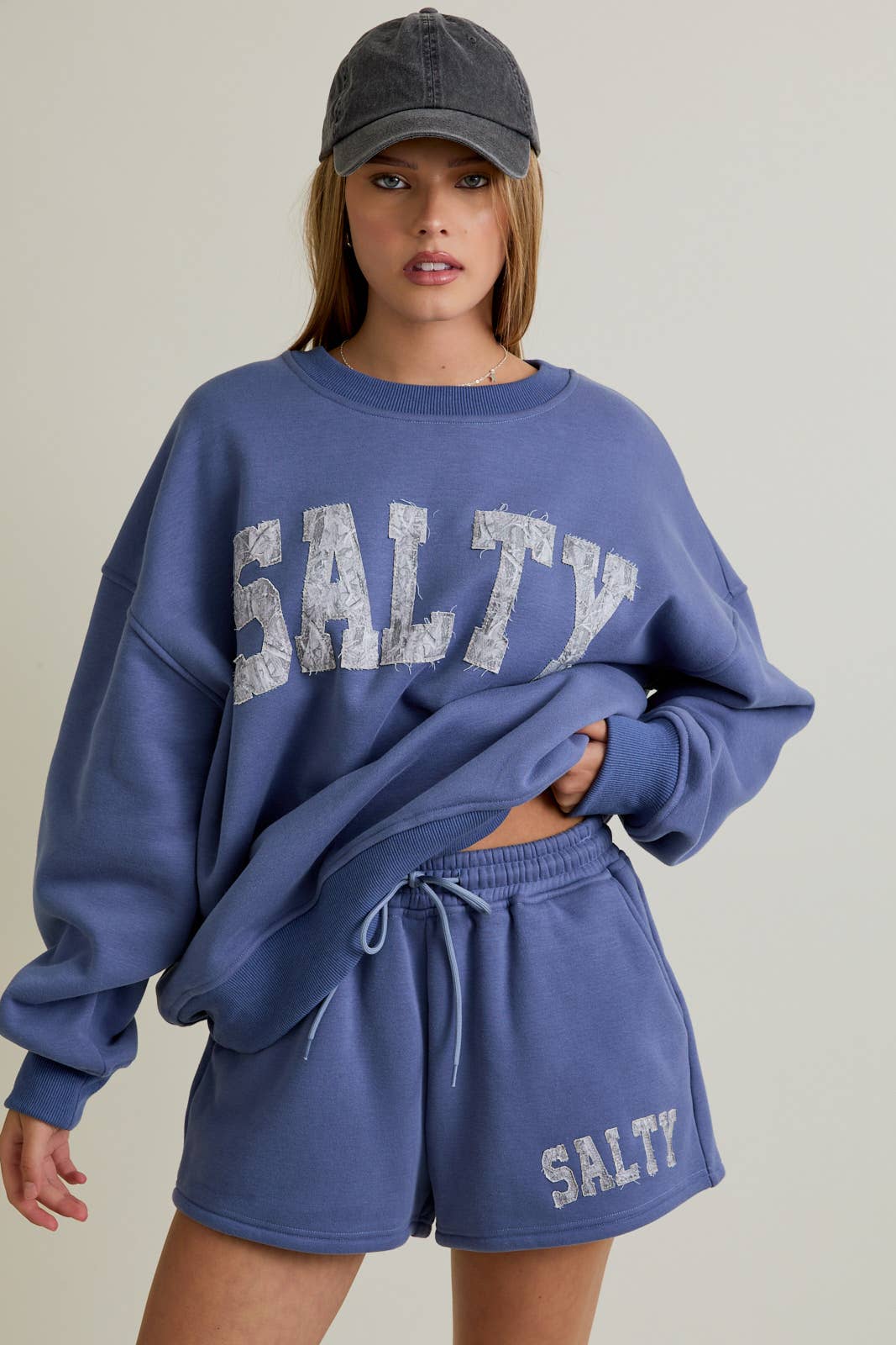 'SALTY' OVERSIZED SWEATSHIRT & SWEATSHORTS: DUSTY BLUE / S