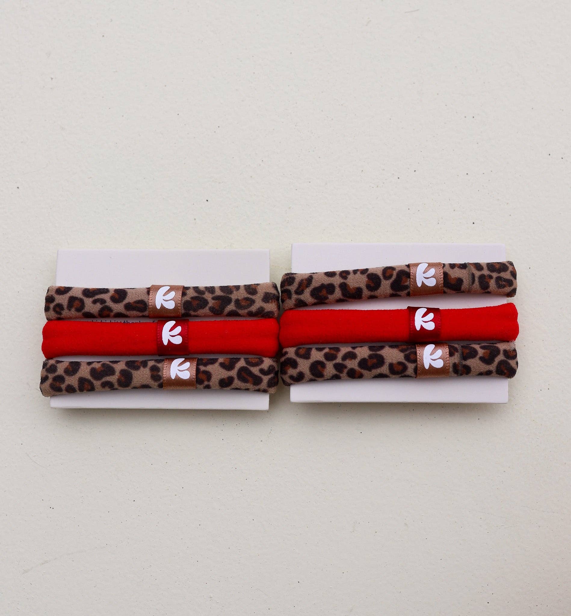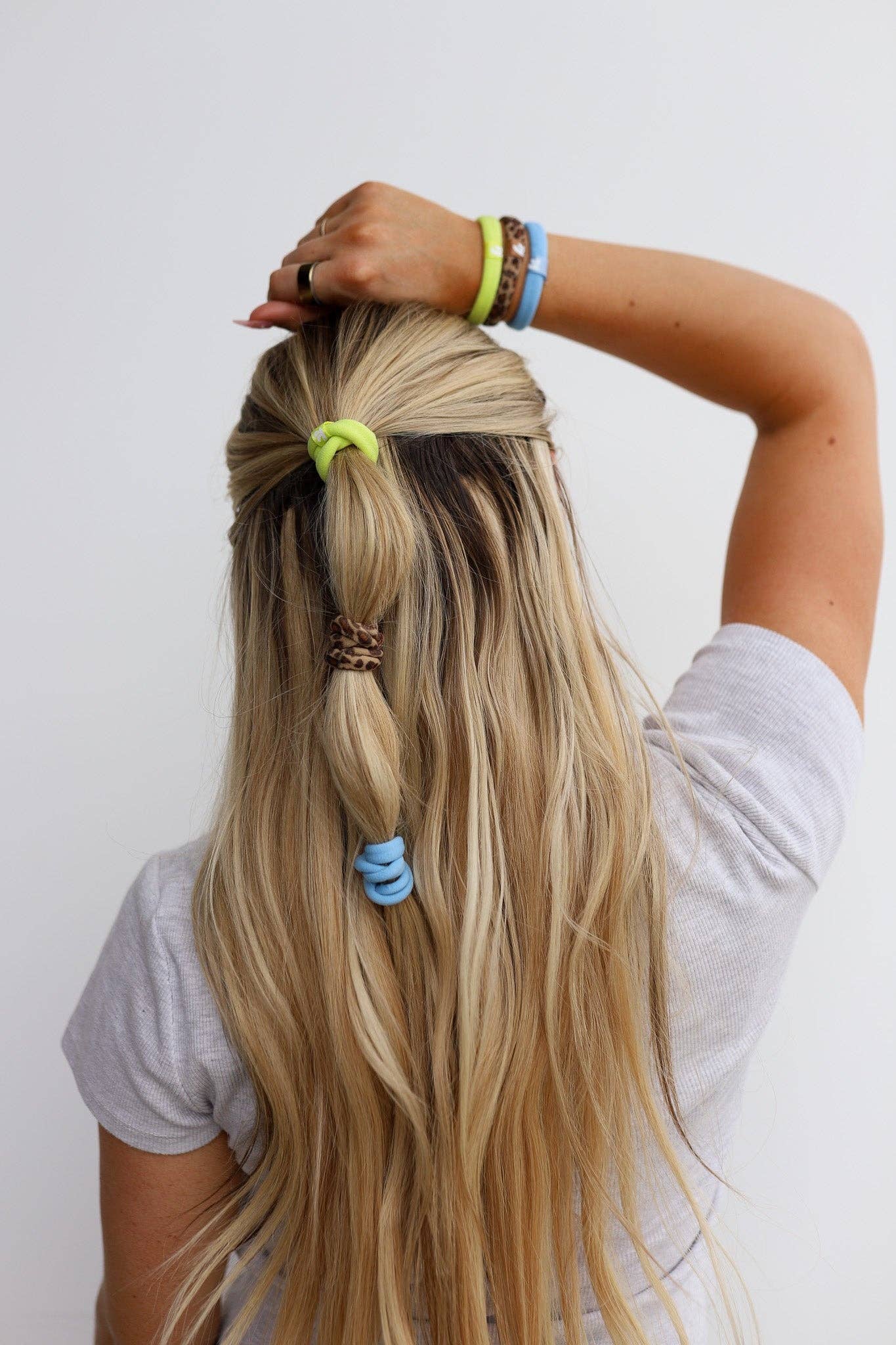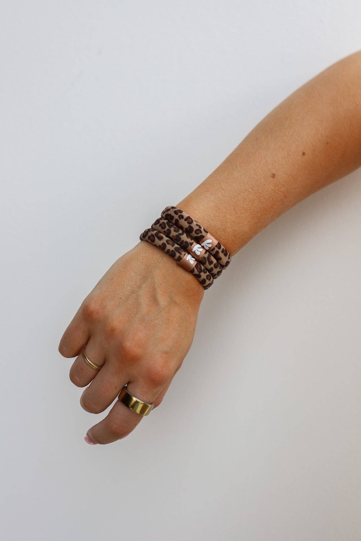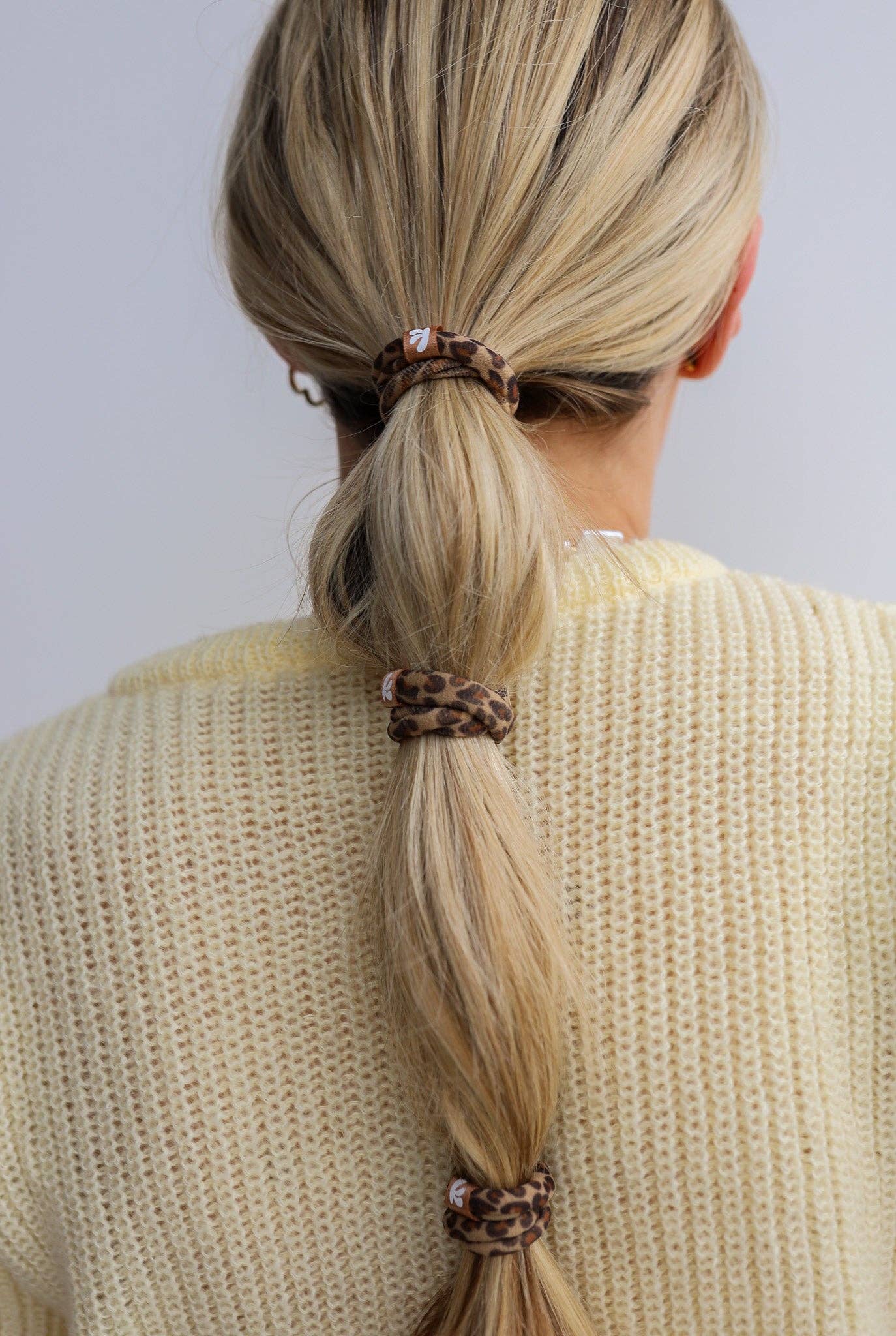 These come in cheetah and solid color combos all completed with our very own KAXI logo on it!! Crafted with a durable yet snug nylon material, these hair ties are designed to keep your hair in place without tugging or causing pain. They are perfect if you need a tight elastic for your high intensity workout, but still offer a stylish look and this elastic is just fabric with no elastic on the inside to damage your hair. Say goodbye to breakage around your face. Works for thin to thick hair! Perfect for pool days, high intensity workouts, or everyday use!