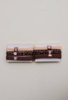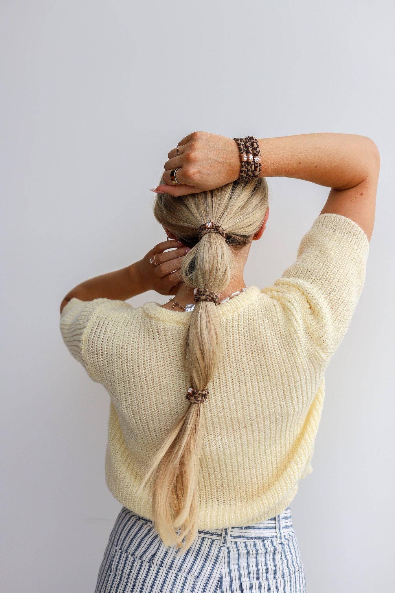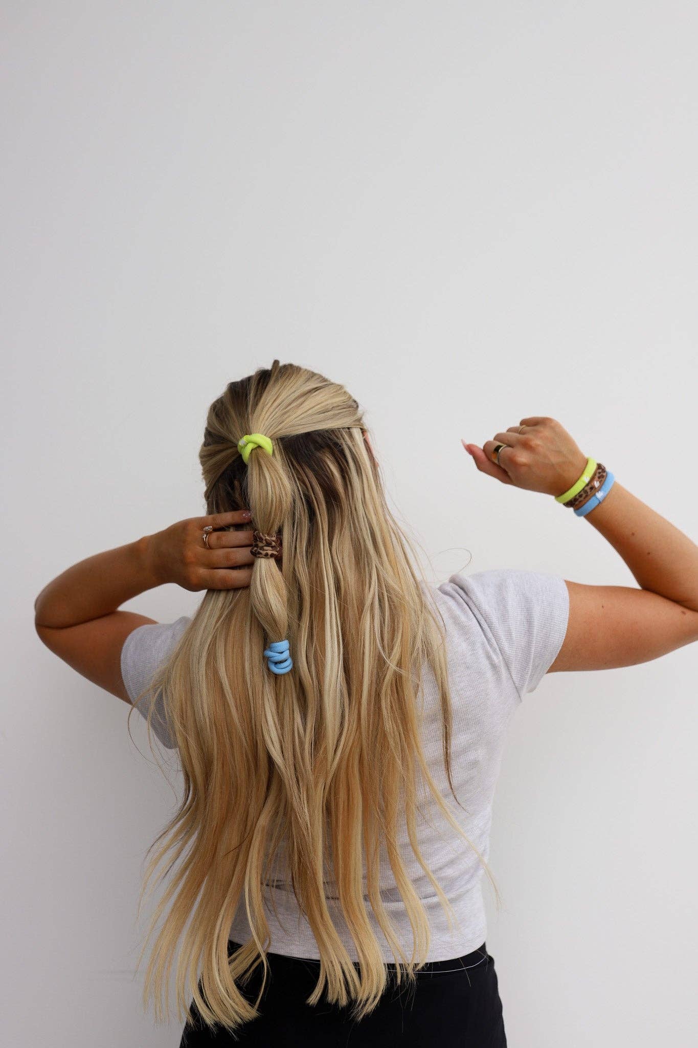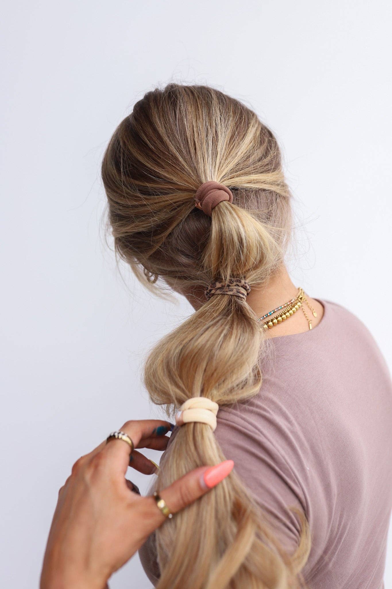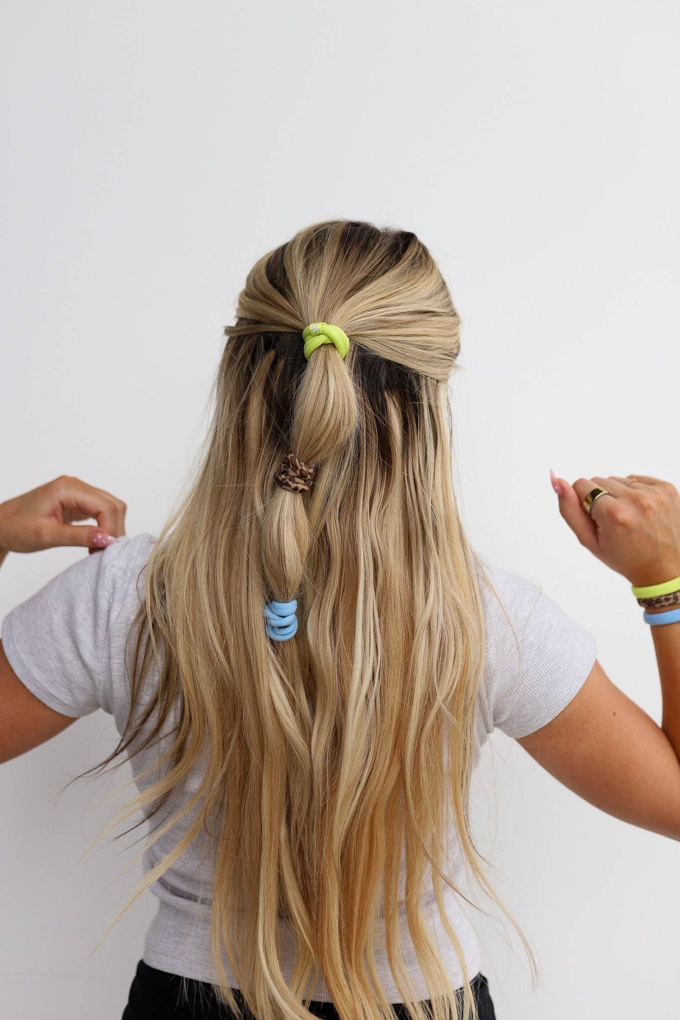 These come in cheetah and solid color combos all completed with our very own KAXI logo on it!! Crafted with a durable yet snug nylon material, these hair ties are designed to keep your hair in place without tugging or causing pain. They are perfect if you need a tight elastic for your high intensity workout, but still offer a stylish look and this elastic is just fabric with no elastic on the inside to damage your hair. Say goodbye to breakage around your face. Works for thin to thick hair! Perfect for pool days, high intensity workouts, or everyday use!