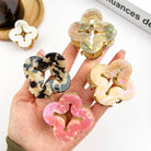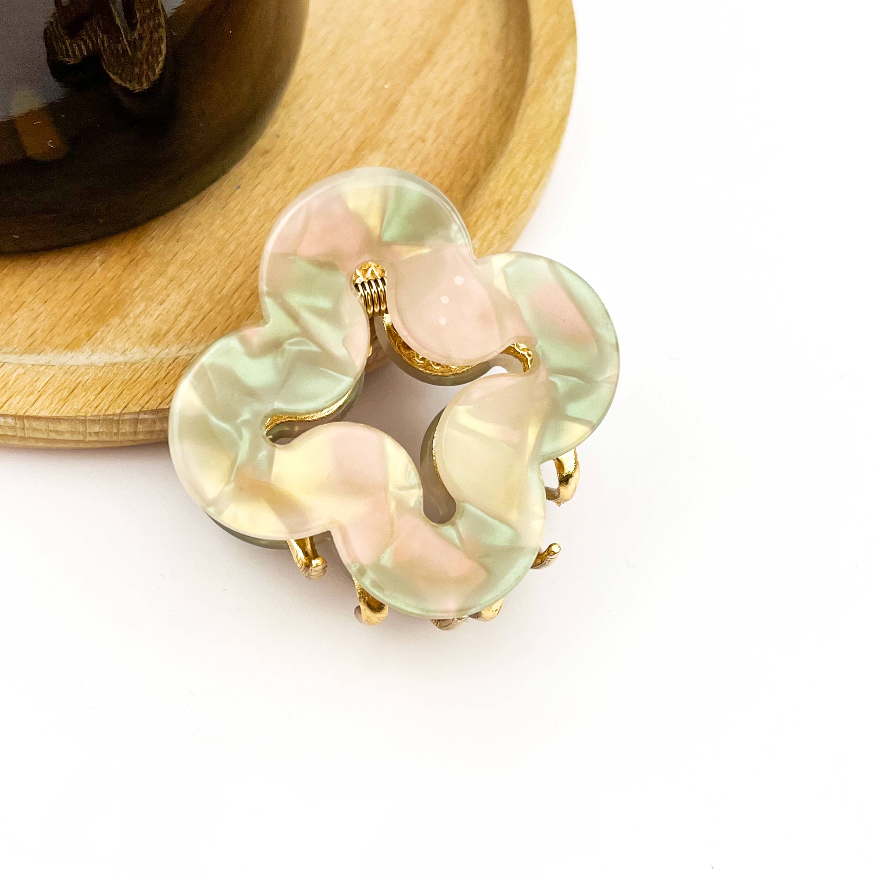 This small floral hair claw clip features a delicate flower design crafted from premium acetate and metal for a refined, modern look. Lightweight yet durable, it provides a secure hold while adding a subtle decorative accent to any hairstyle. Ideal for daily wear, work, or casual outings, this compact accessory is perfect for creating effortless, polished styles with understated elegance.