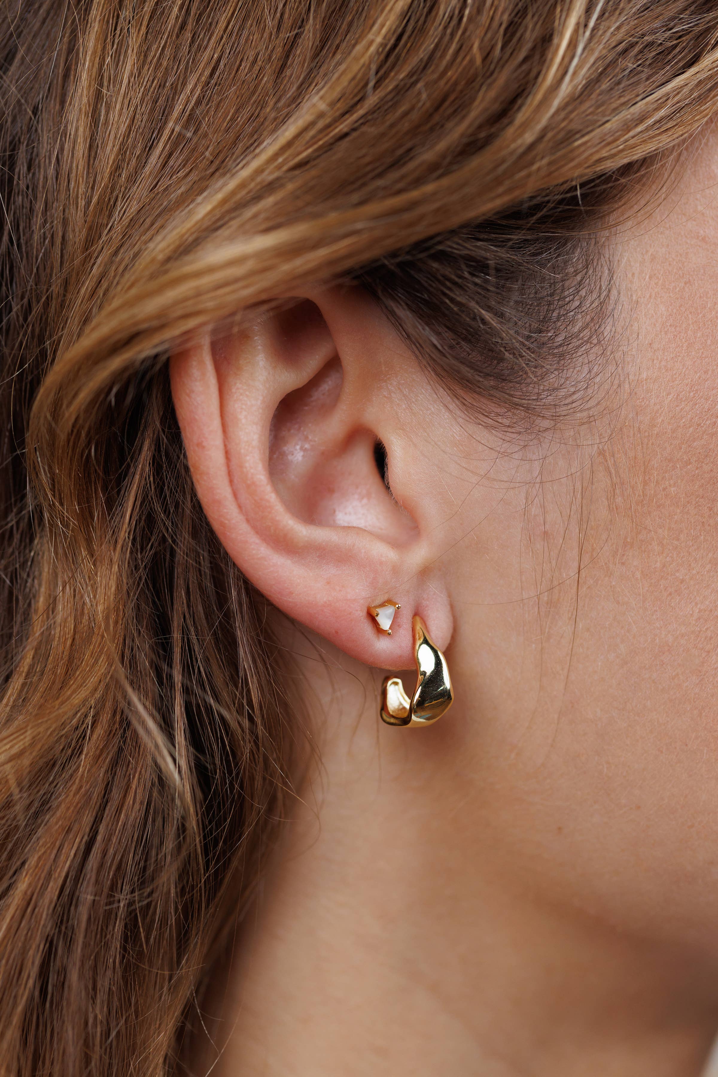 A sleek gold hoop with organic lines, adding a contemporary twist to a classic design.