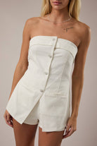 Strapless White Denim Romper