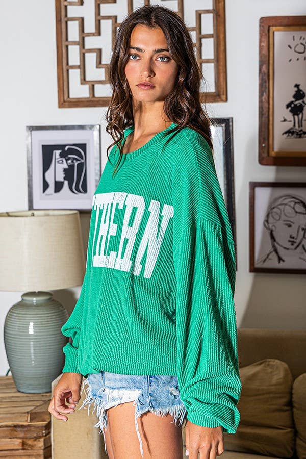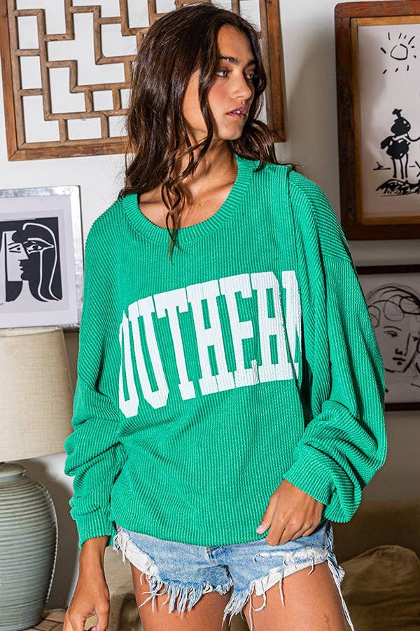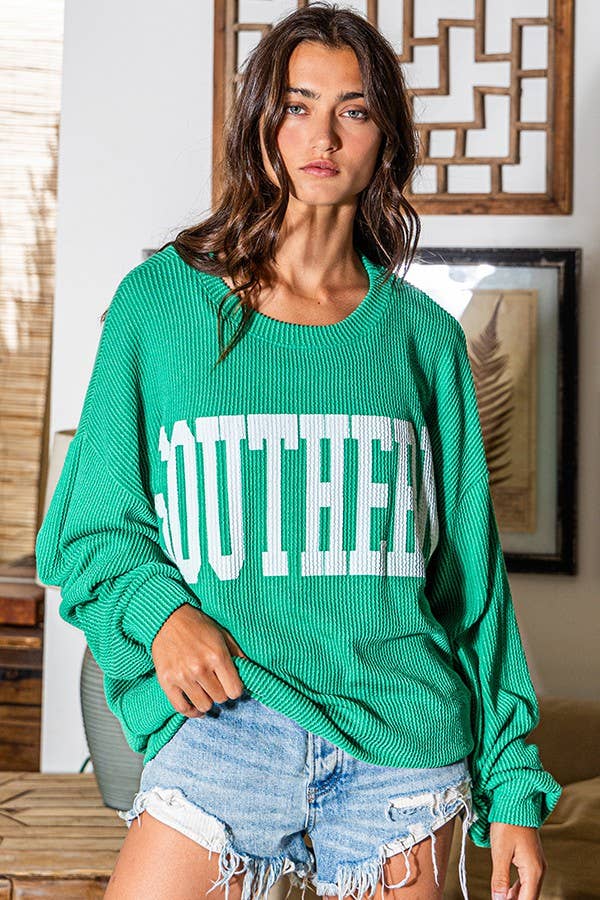 'SOUTHERN' Comfy Oversize Graphic Sweatshirt, Gameday: GREEN