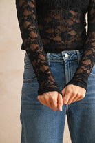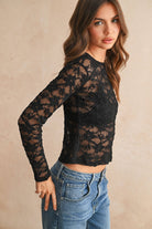 T5535 FLORAL TEXTURED FABRIC TOP: Black / S