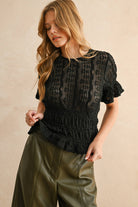 T5678 SHORT SLEEVE LACE BLOUSE: Cream / L