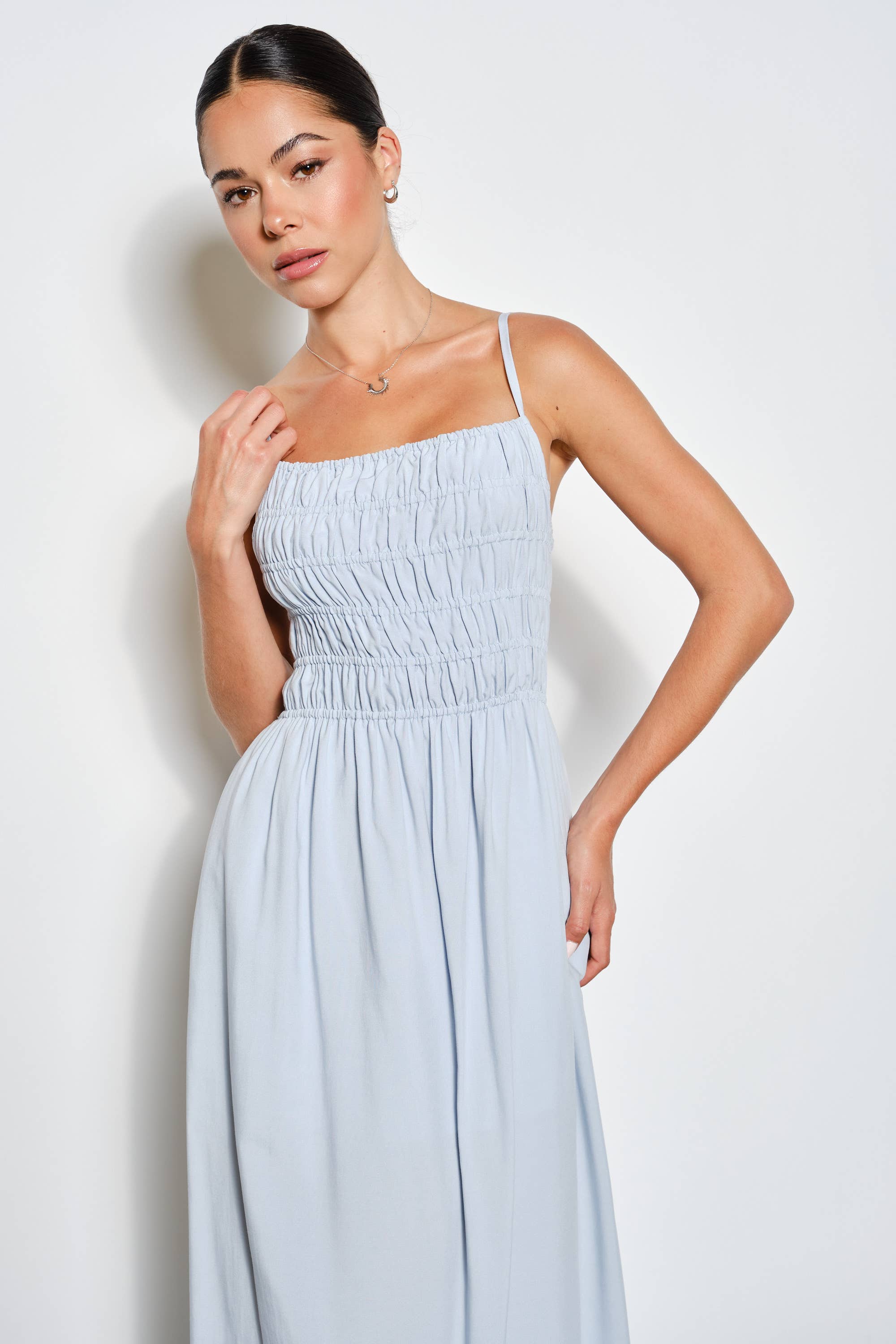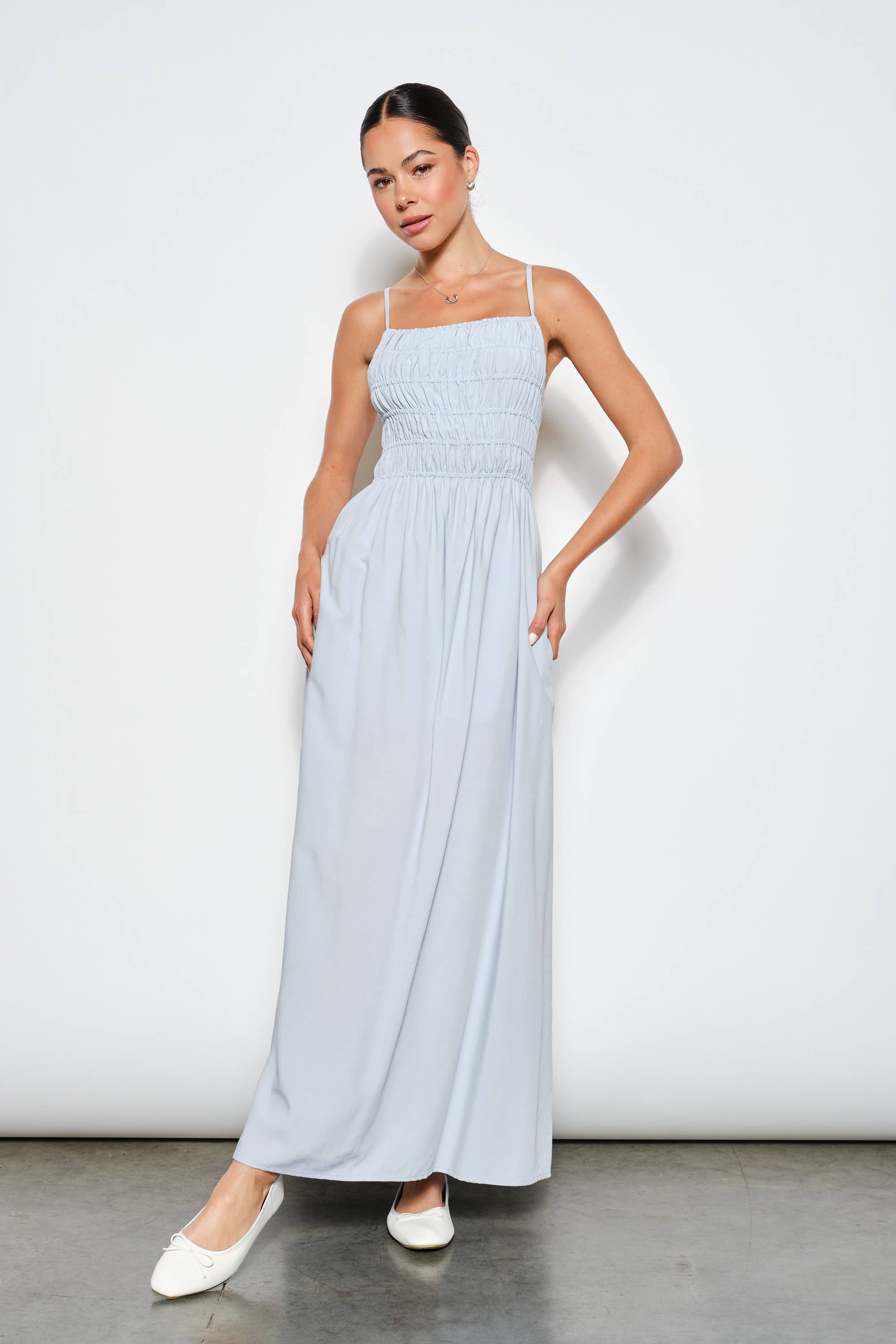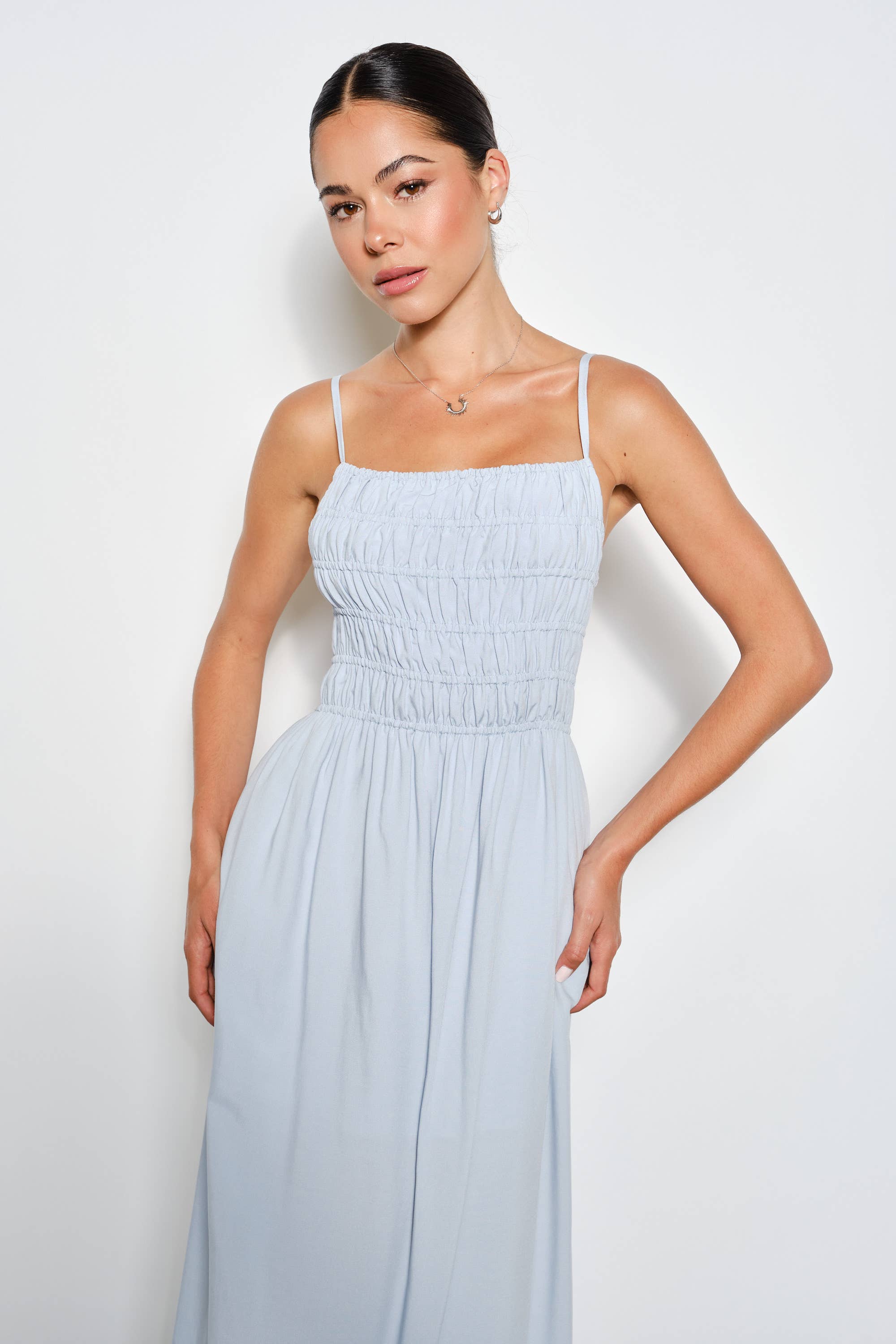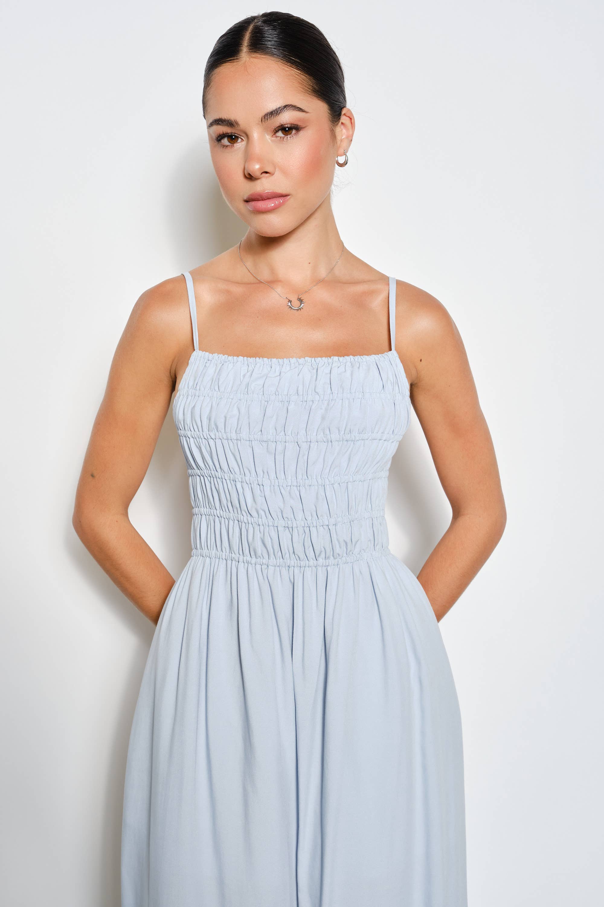 Effortless elegance meets everyday comfort in the Tempest Maxi Dress. This breezy cotton design features a smocked top, adjustable straps, and an open back for a flattering silhouette. Hidden pockets add practical style, while the lined bodice ensures confidence through every wear. Perfect for warm weather and casual occasions.