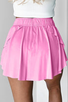 Pink Stylish and flattering high waist design enhances a sexy curve. Comfortable flexible drawstring closure for adjustable fit. Built-in lining for extra support and coverage. Perfect for tennis and other sports activities.